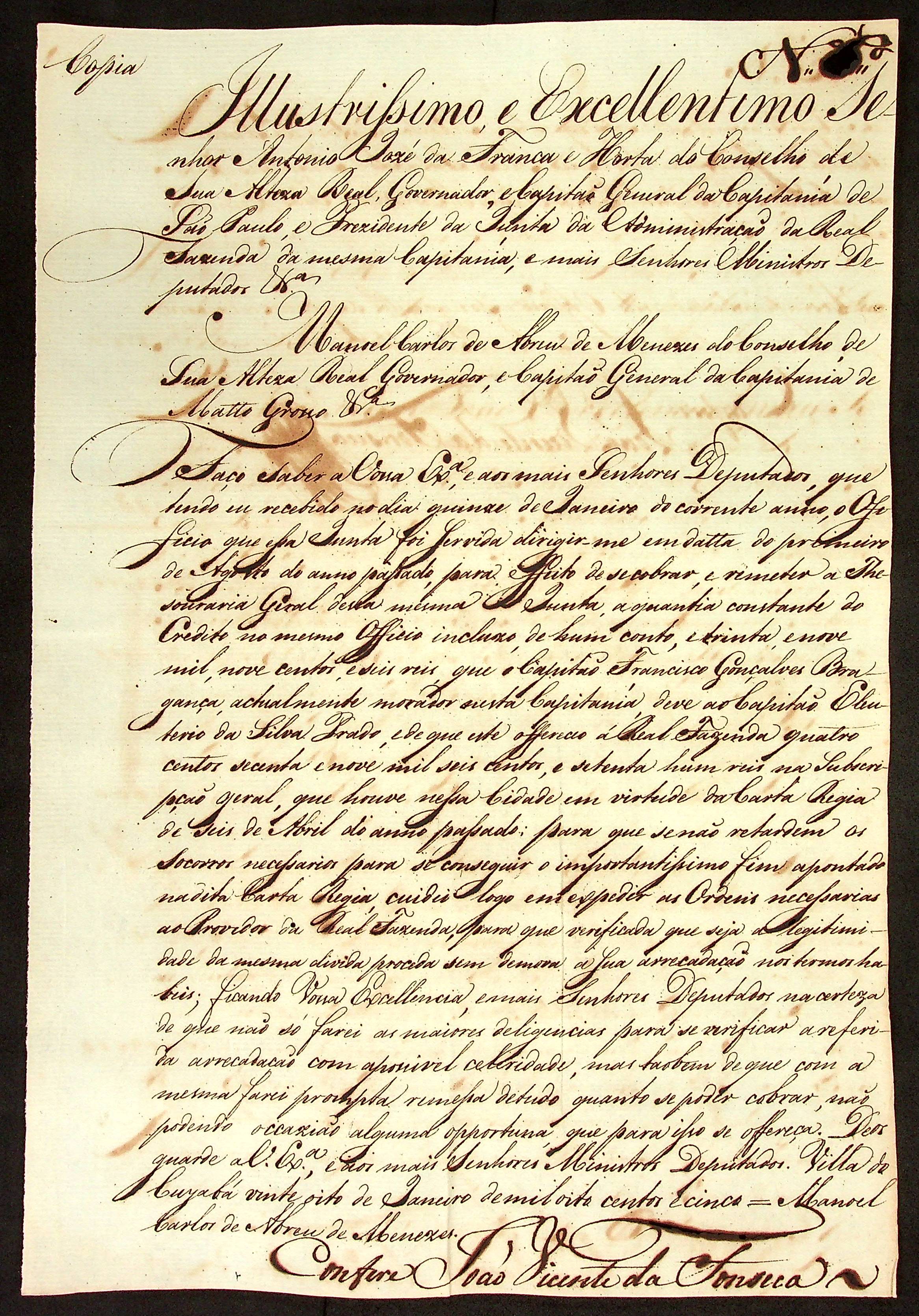 CARTA da Junta da Fazenda da [Capitania de São Paulo] à [Terceira Junta Governativa da Capitania de Mato Grosso].