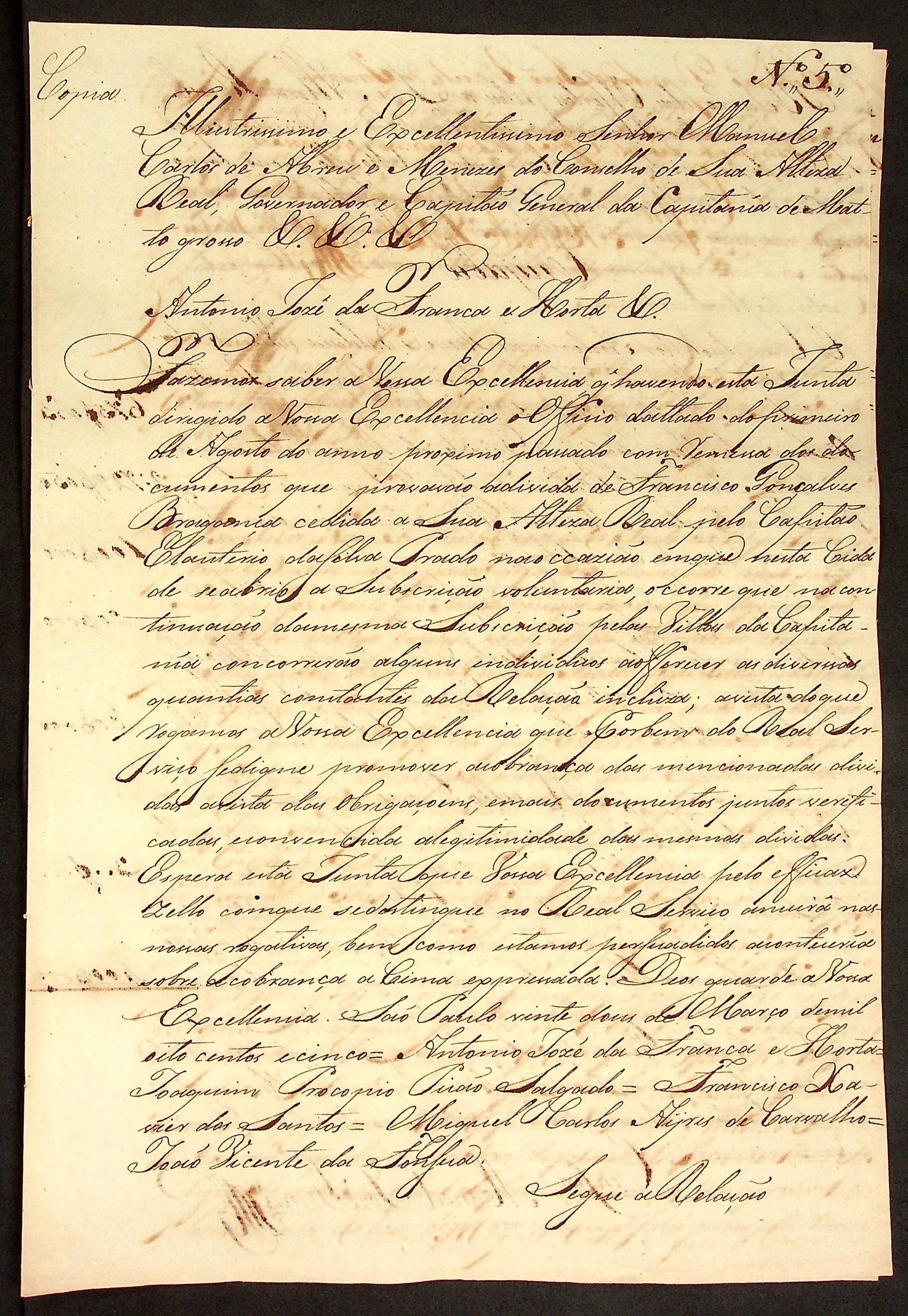 CARTA da Junta da Fazenda da [Capitania de São Paulo] à [Terceira Junta Governativa da Capitania de Mato Grosso].