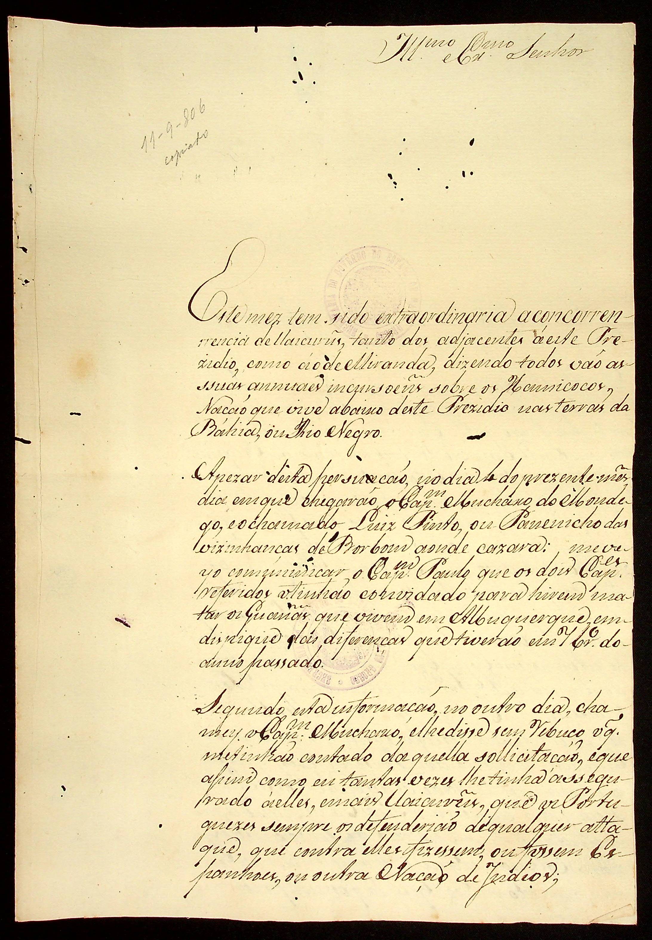 CARTA (incompleta) de [...] à [Terceira Junta Governativa da Capitania de Mato Grosso].