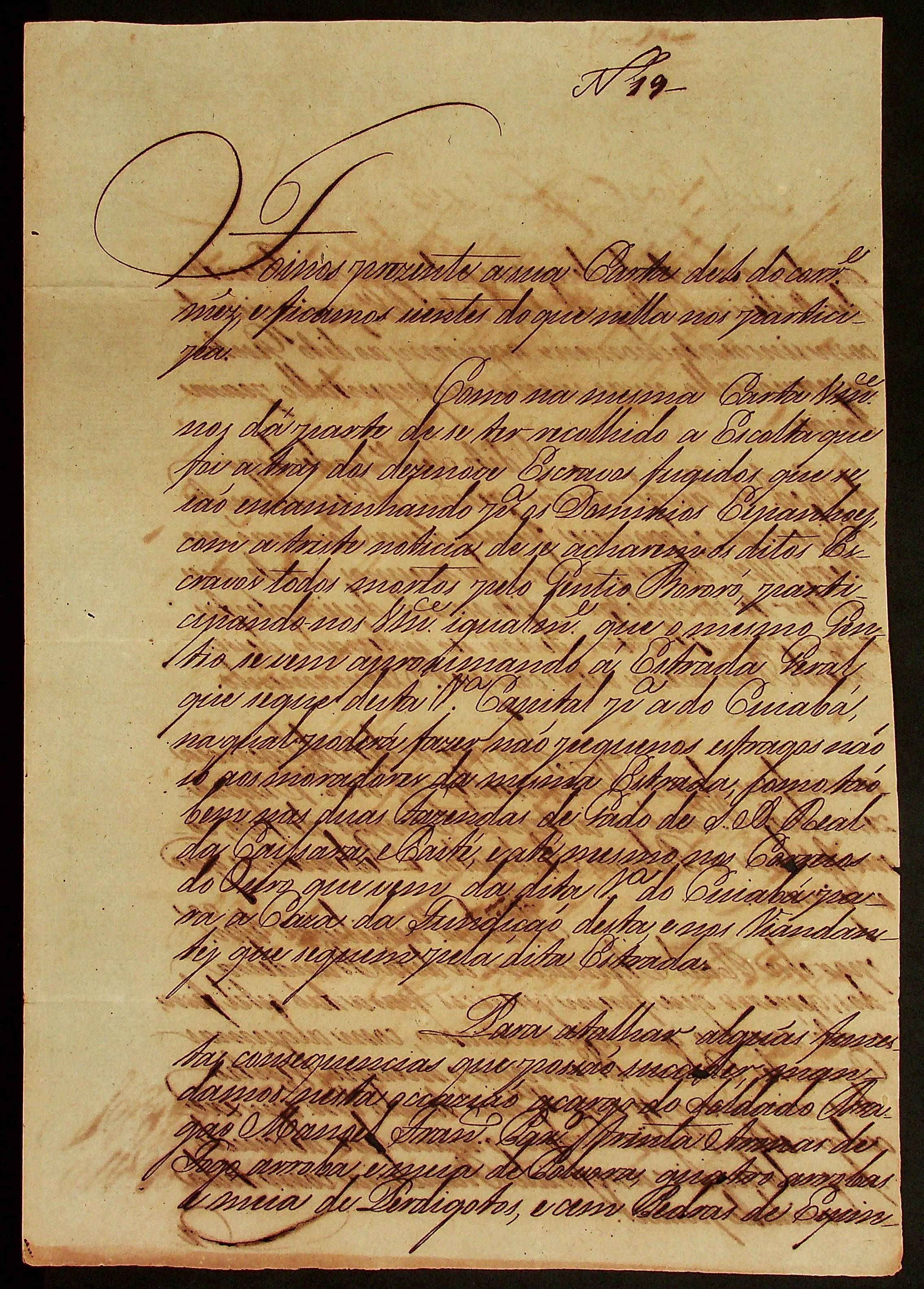 CARTA da [Terceira Junta Governativa da Capitania de Mato Grosso] ao Comandante da Povoação de Vila Maria Antônio Pinto de Miranda.