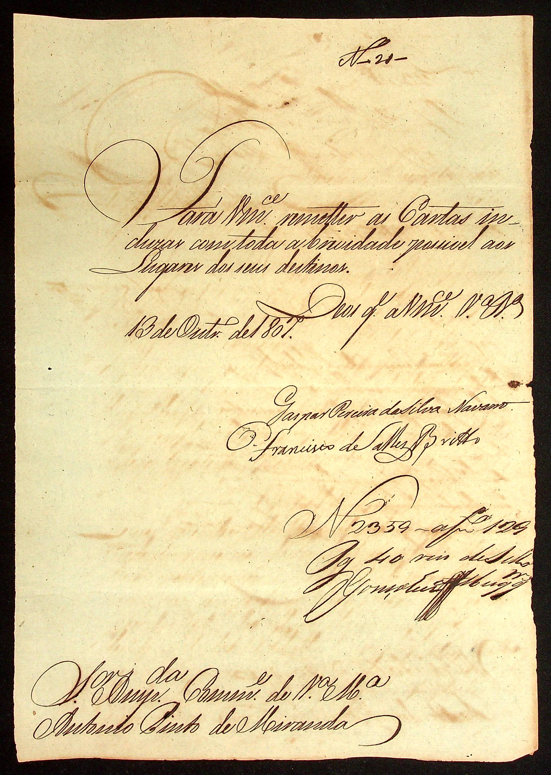 CARTA da [Terceira Junta Governativa da Capitania de Mato Grosso] ao Comandante da Povoação de Vila Maria Antônio Pinto de Miranda.