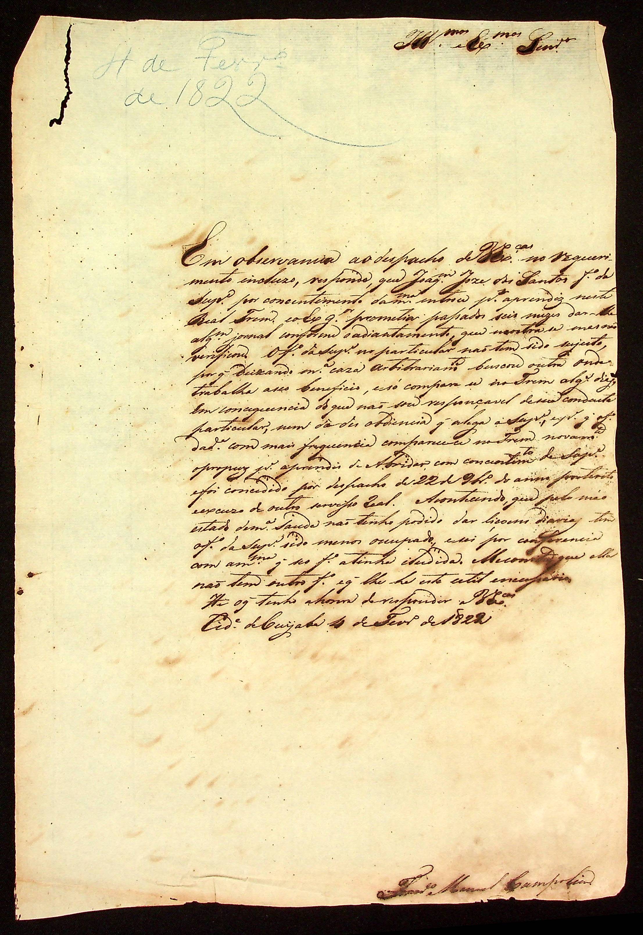 CARTA de Francisco Manoel [Campo] à [Junta Governativa Provisória da Província de Mato Grosso].