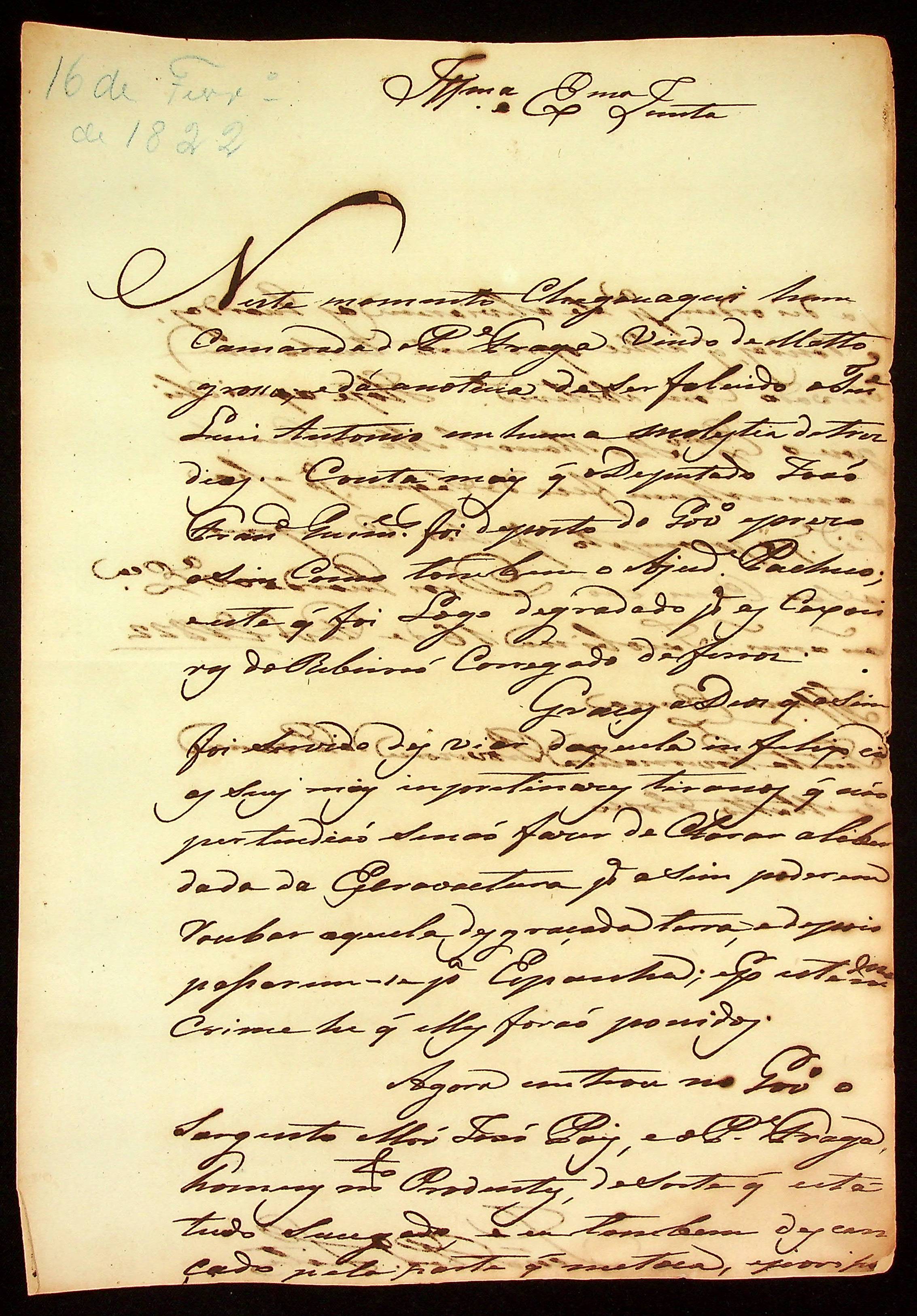 CARTA de João Pereira Leite à [Junta Governativa Provisória da Província de Mato Grosso].