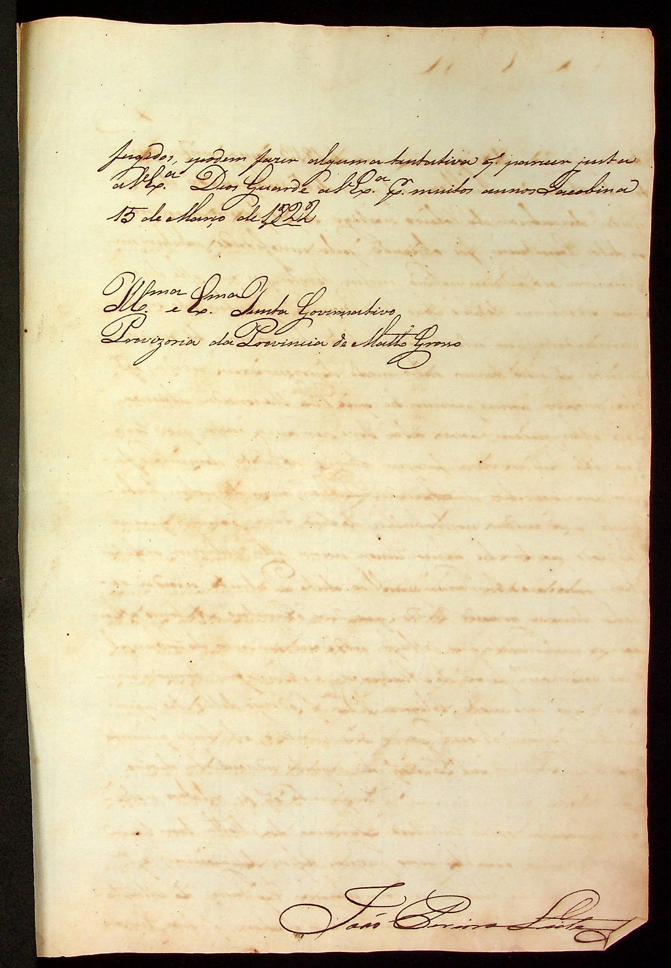 CARTA de João Pereira Leite à [Junta Governativa Provisória da Província de Mato Grosso].