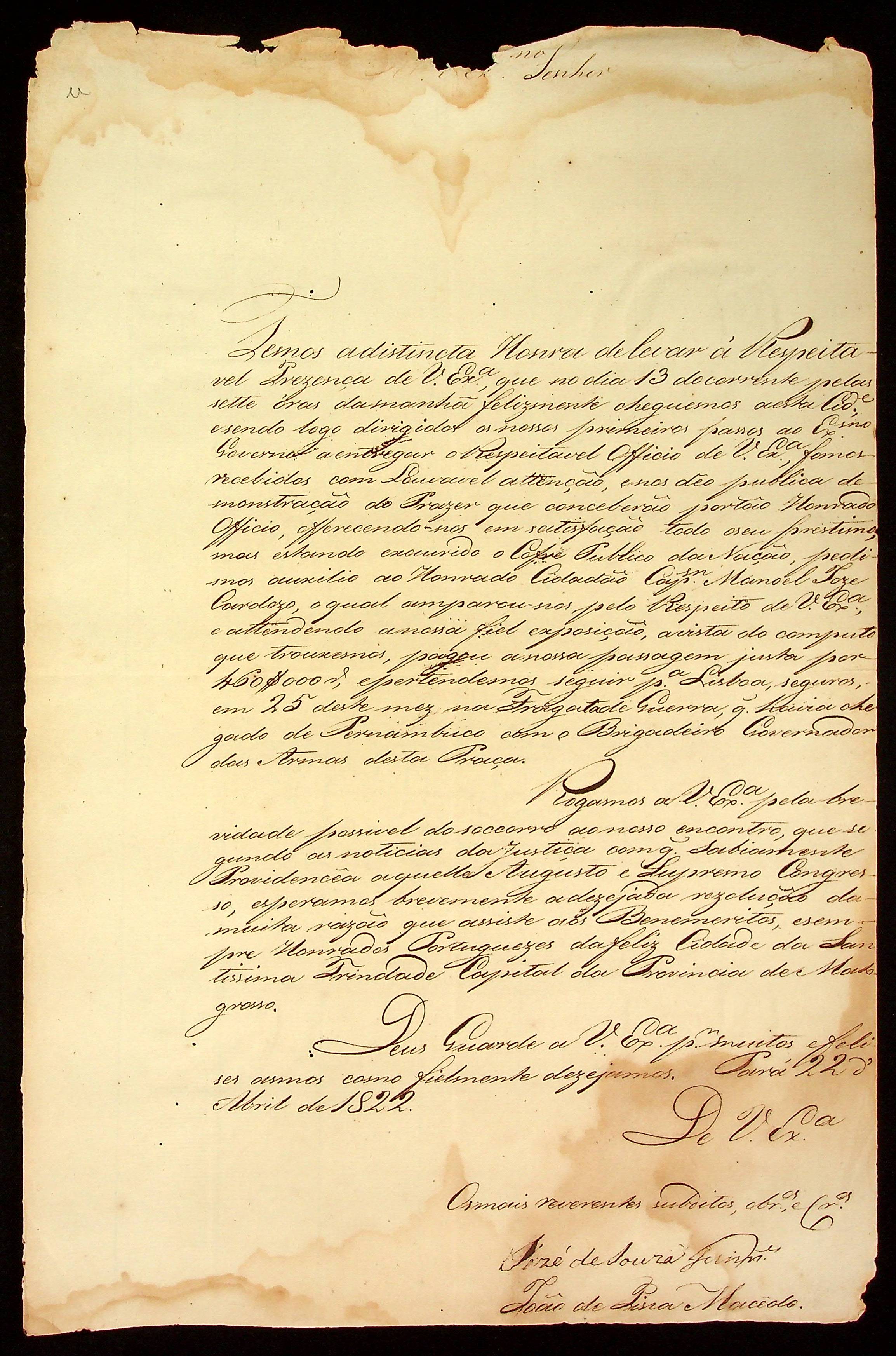 CARTA de José de Souza Guimarães e João Pina Macedo ao [Governador do Pará].