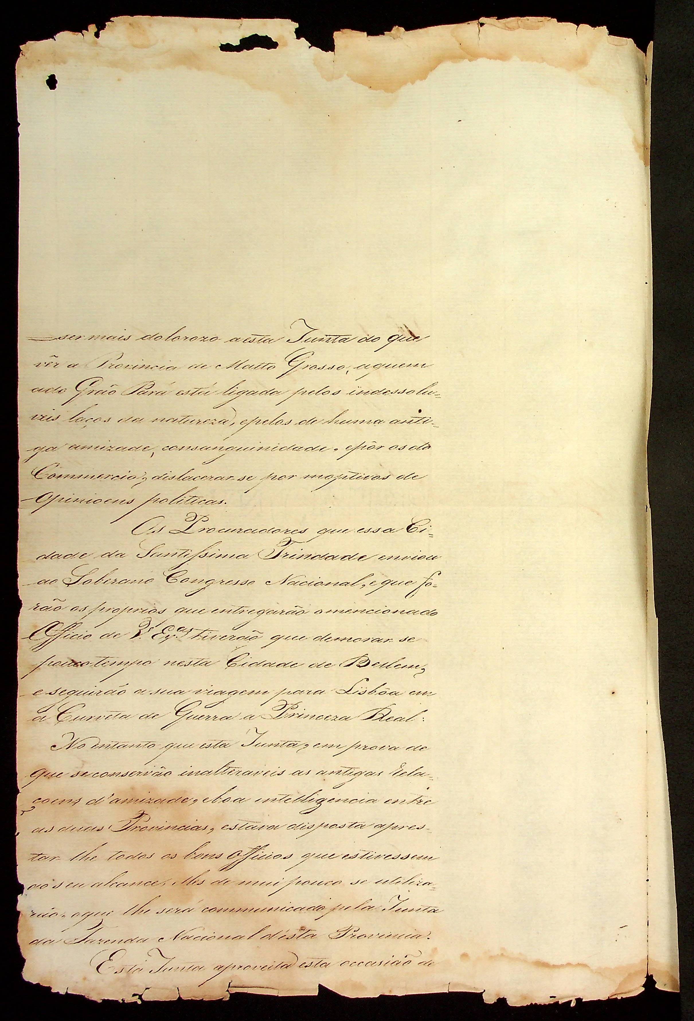 CARTA de Junta Provisória do Governo Civil do Pará à [Junta Governativa Provisória da Província de Mato Grosso].