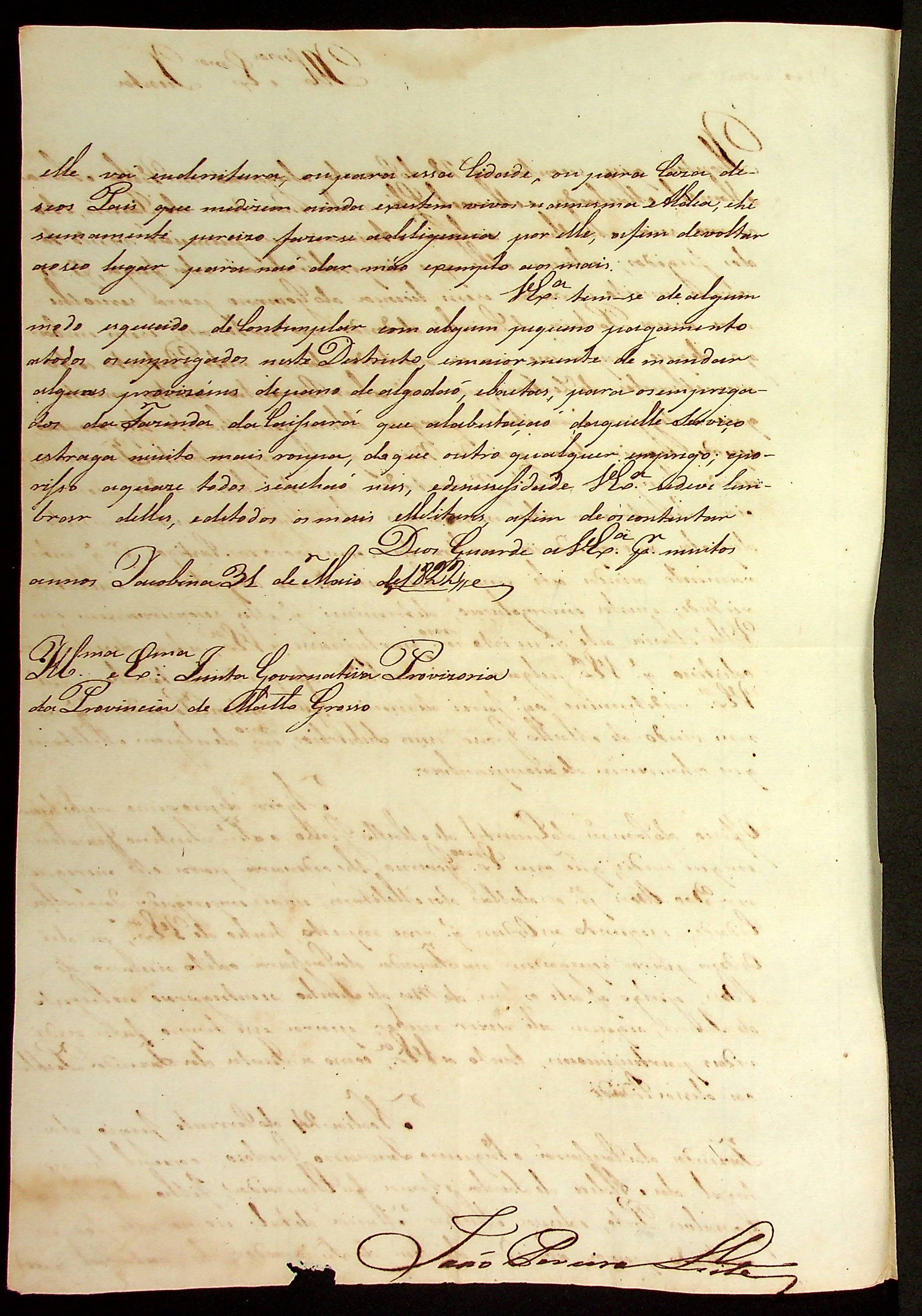CARTA de João Pereira Leite à [Junta Governativa Provisória da Província de Mato Grosso].