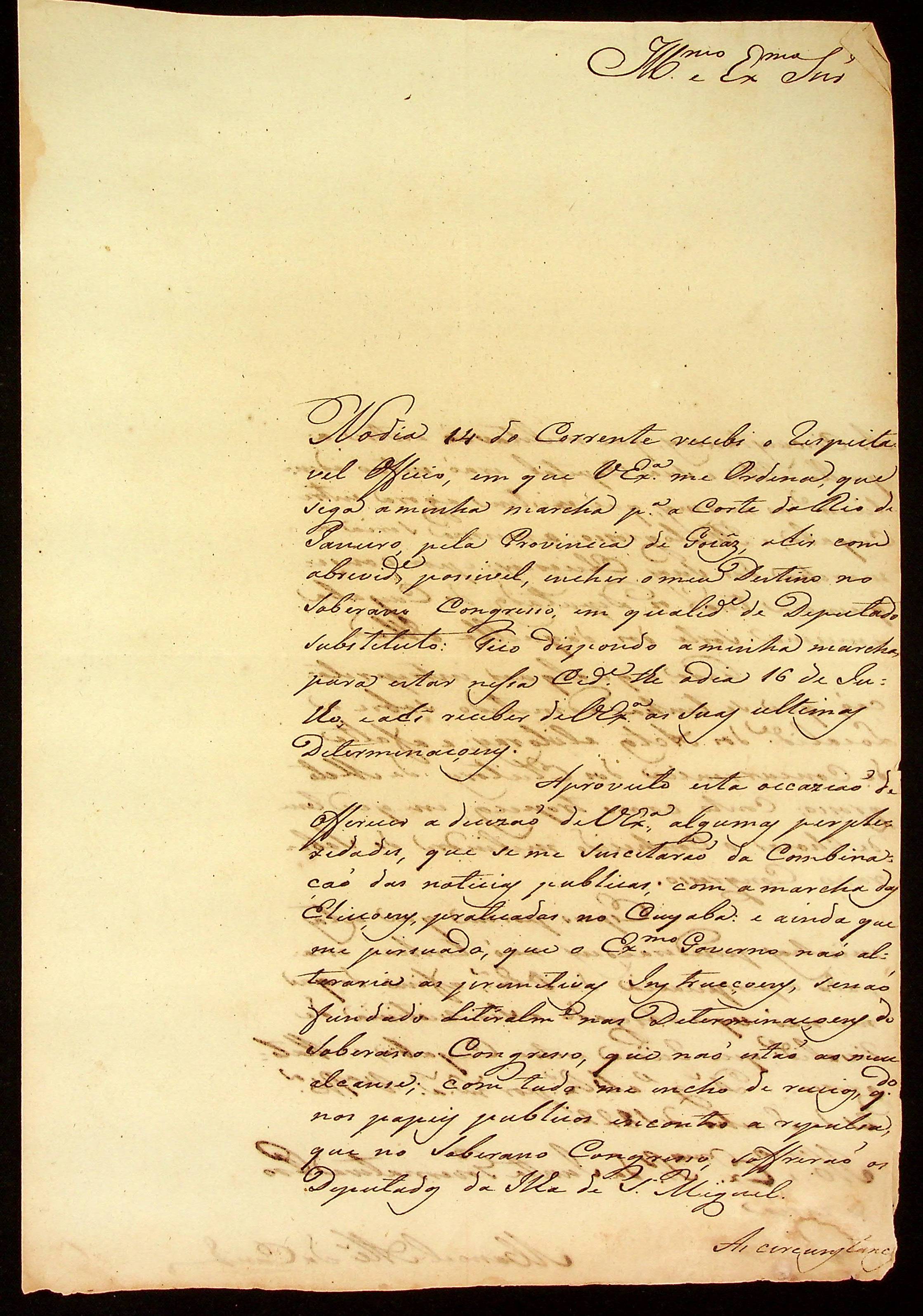 CARTA de Manoel Alvares da Cunha à [Junta Governativa Provisória da Província de Mato Grosso].