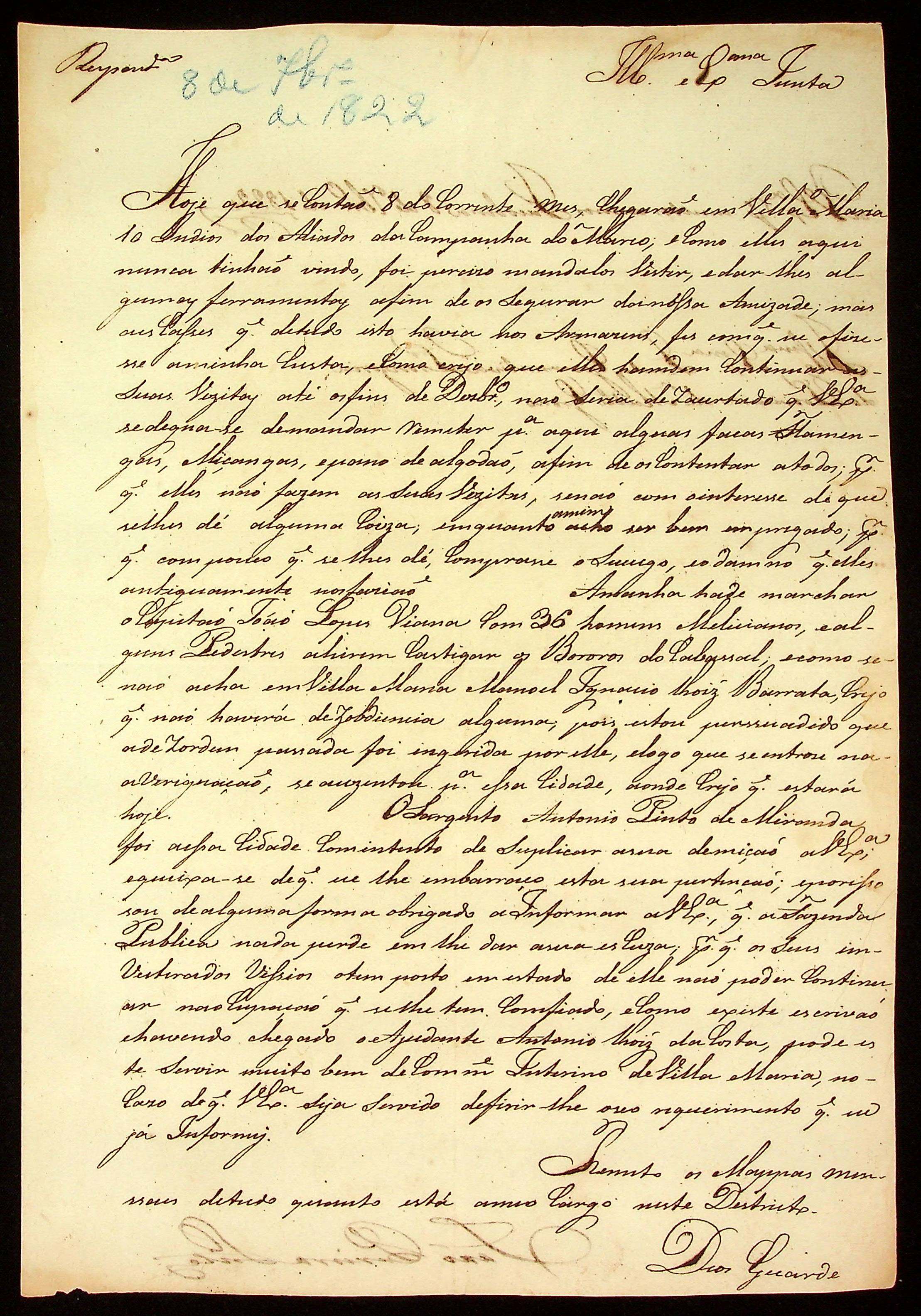 CARTA de João Pereira Leite à [Junta Governativa Provisória da Província de Mato Grosso].