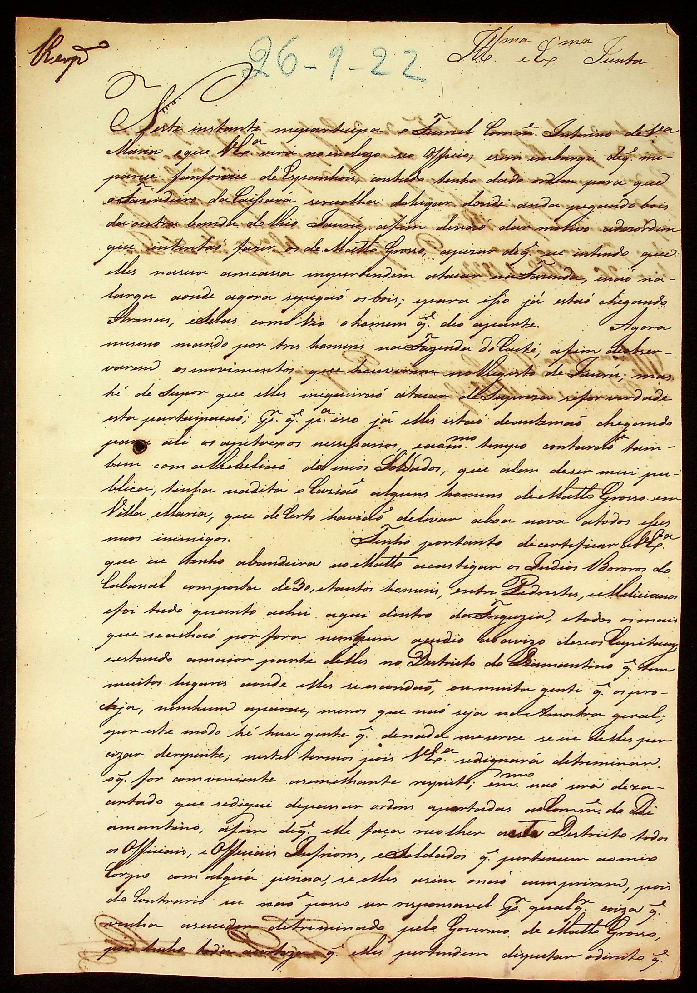 CARTA de João Pereira Leite à [Junta Governativa Provisória da Província de Mato Grosso].