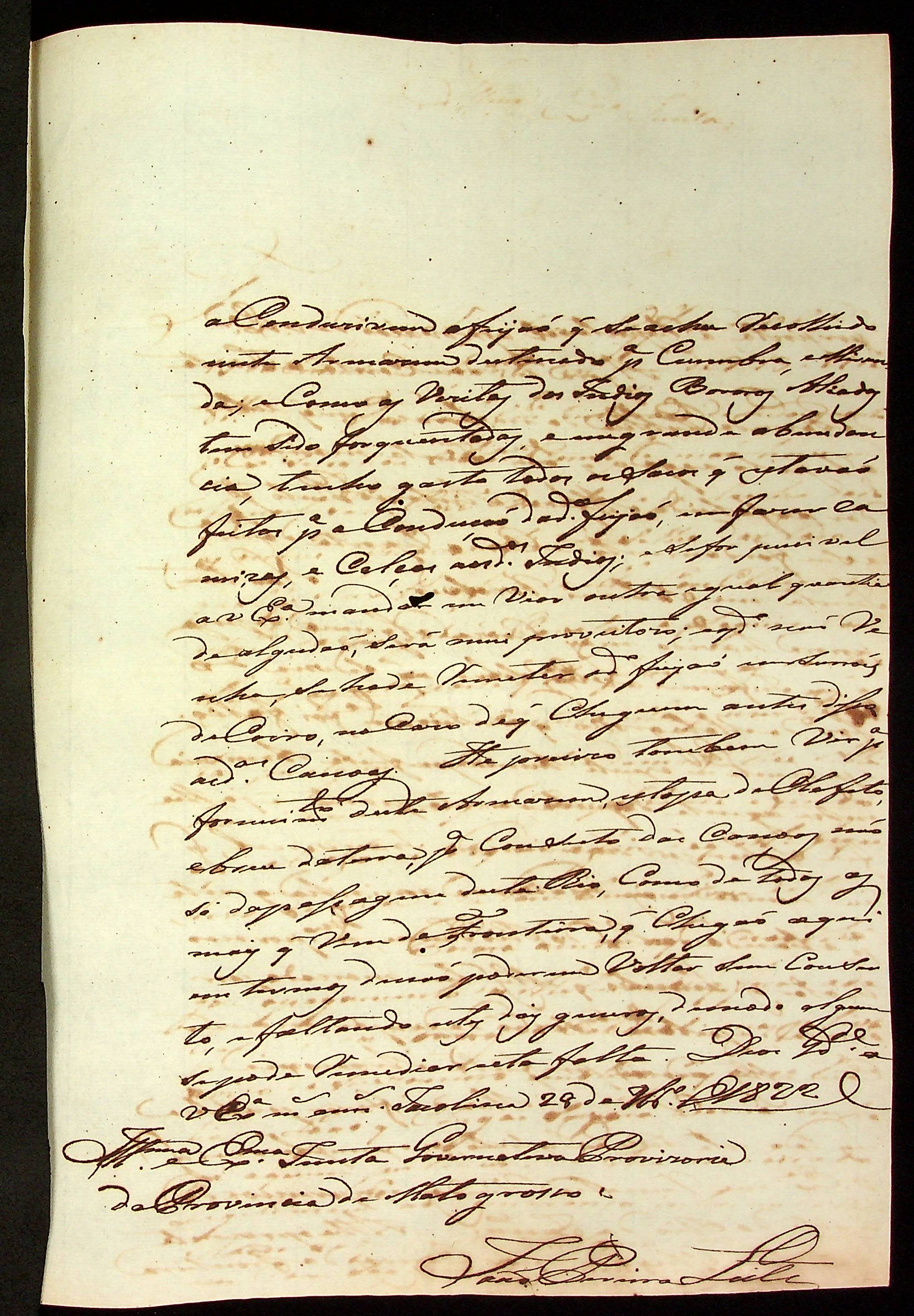 CARTA de João Pereira Leite à [Junta Governativa Provisória da Província de Mato Grosso].