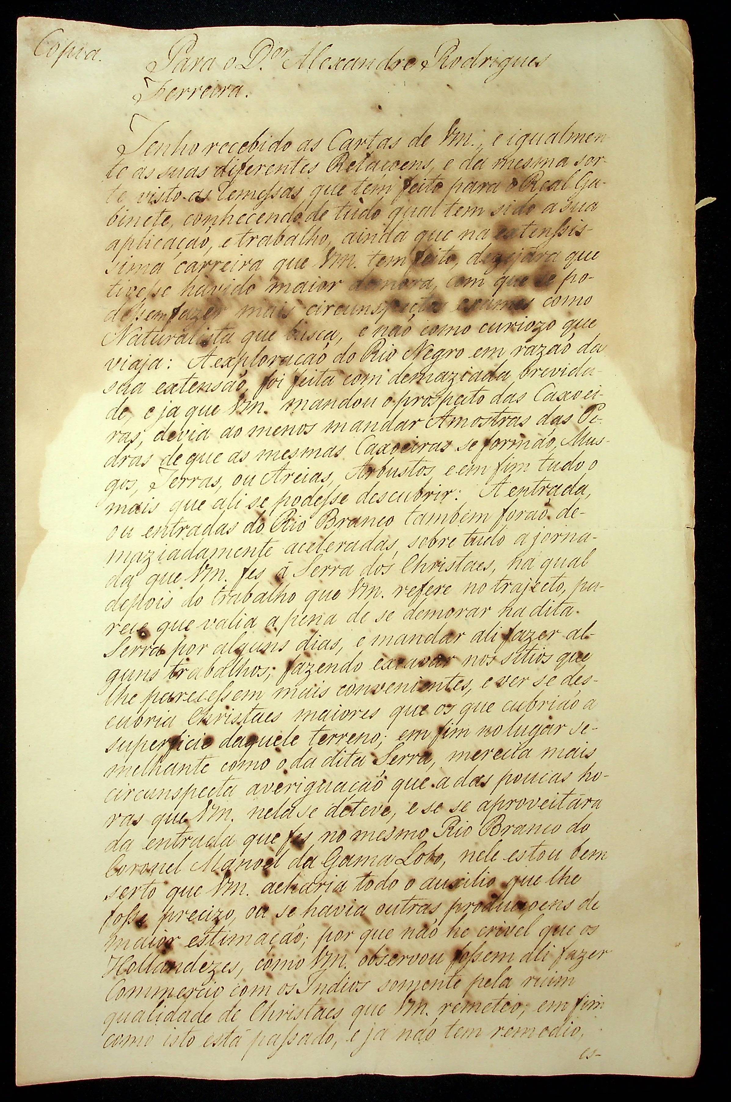 CARTA (cópia) de Martinho de Mello e Castro ao Naturalista Alexandre Rodrigues Ferreira, versando sobre os lugares e experimentos realizados pelo Naturalista.