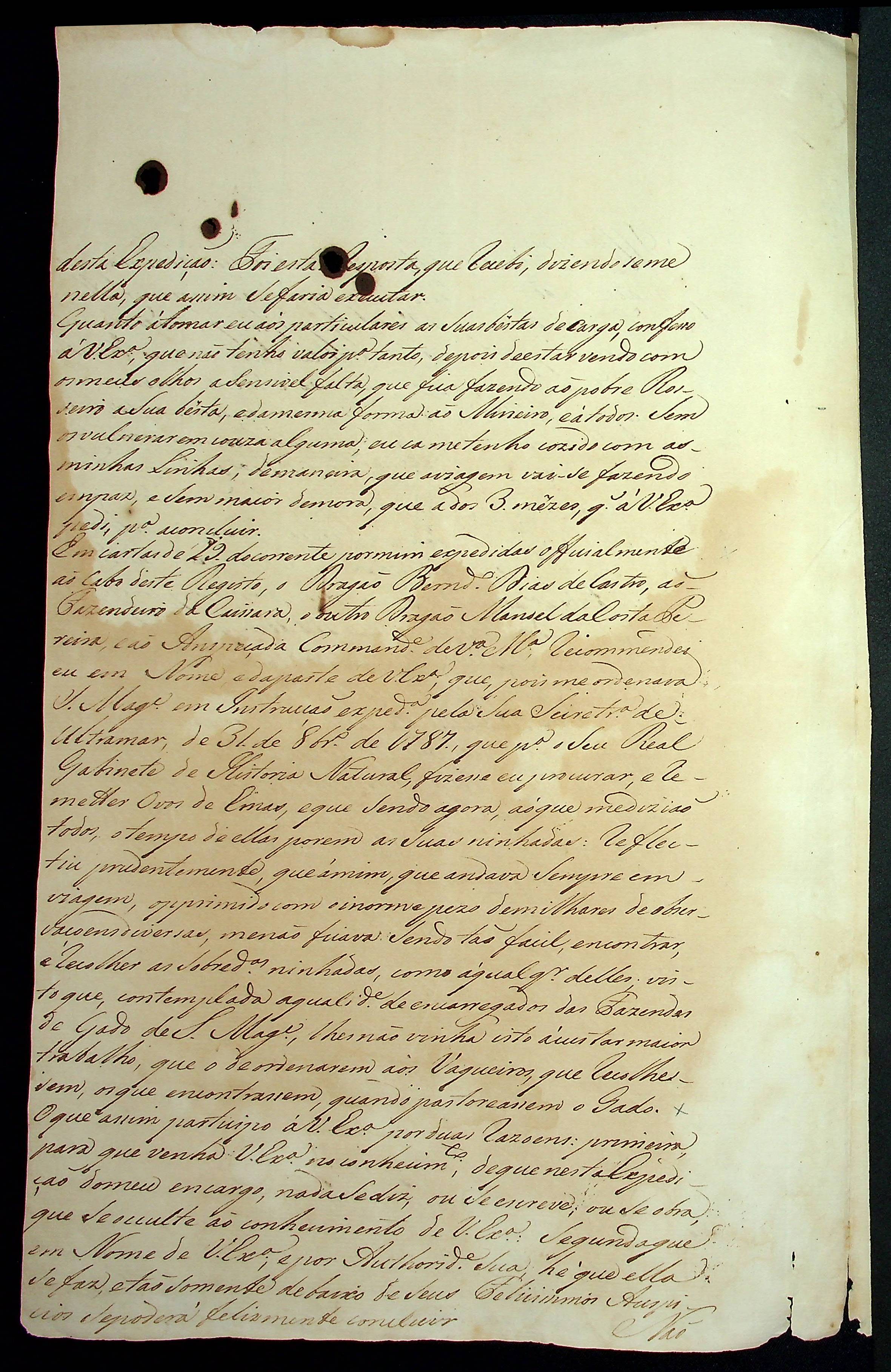 CARTA (cópia) do Naturalista Alexandre Rodrigues Ferreira ao Governador e Capitão - General de Mato Grosso João de Albuquerque de Melo Pereira e Cáceres.
