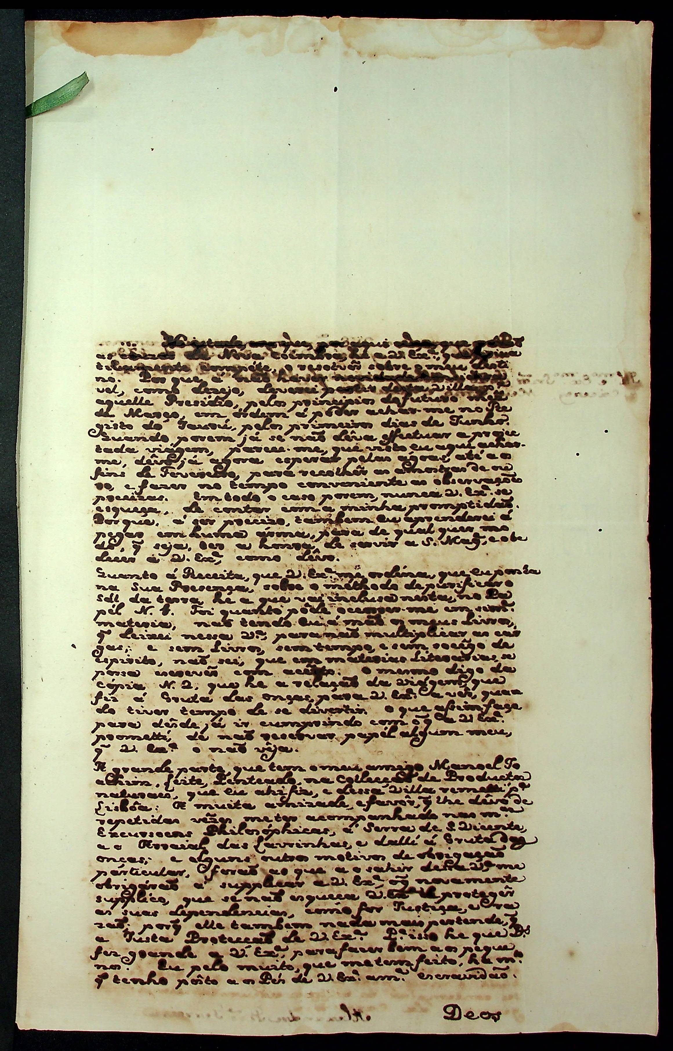CARTA do Naturalista Alexandre Rodrigues Ferreira ao Governador e Capitão-General da Capitania de Mato Grosso João de Albuquerque de Melo Pereira e Cáceres.