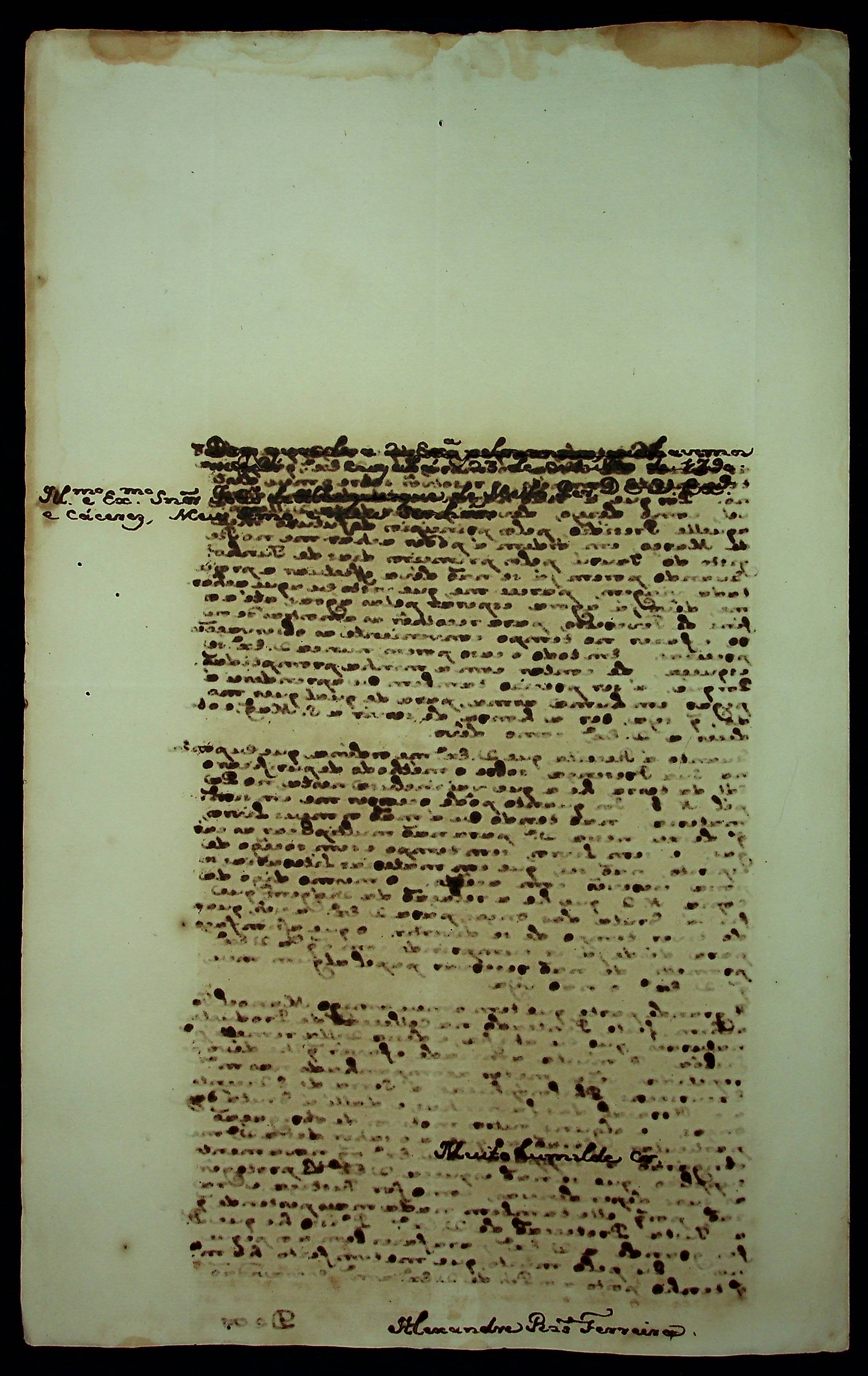 CARTA do Naturalista Alexandre Rodrigues Ferreira ao Governador e Capitão-General da Capitania de Mato Grosso João de Albuquerque de Melo Pereira e Cáceres.