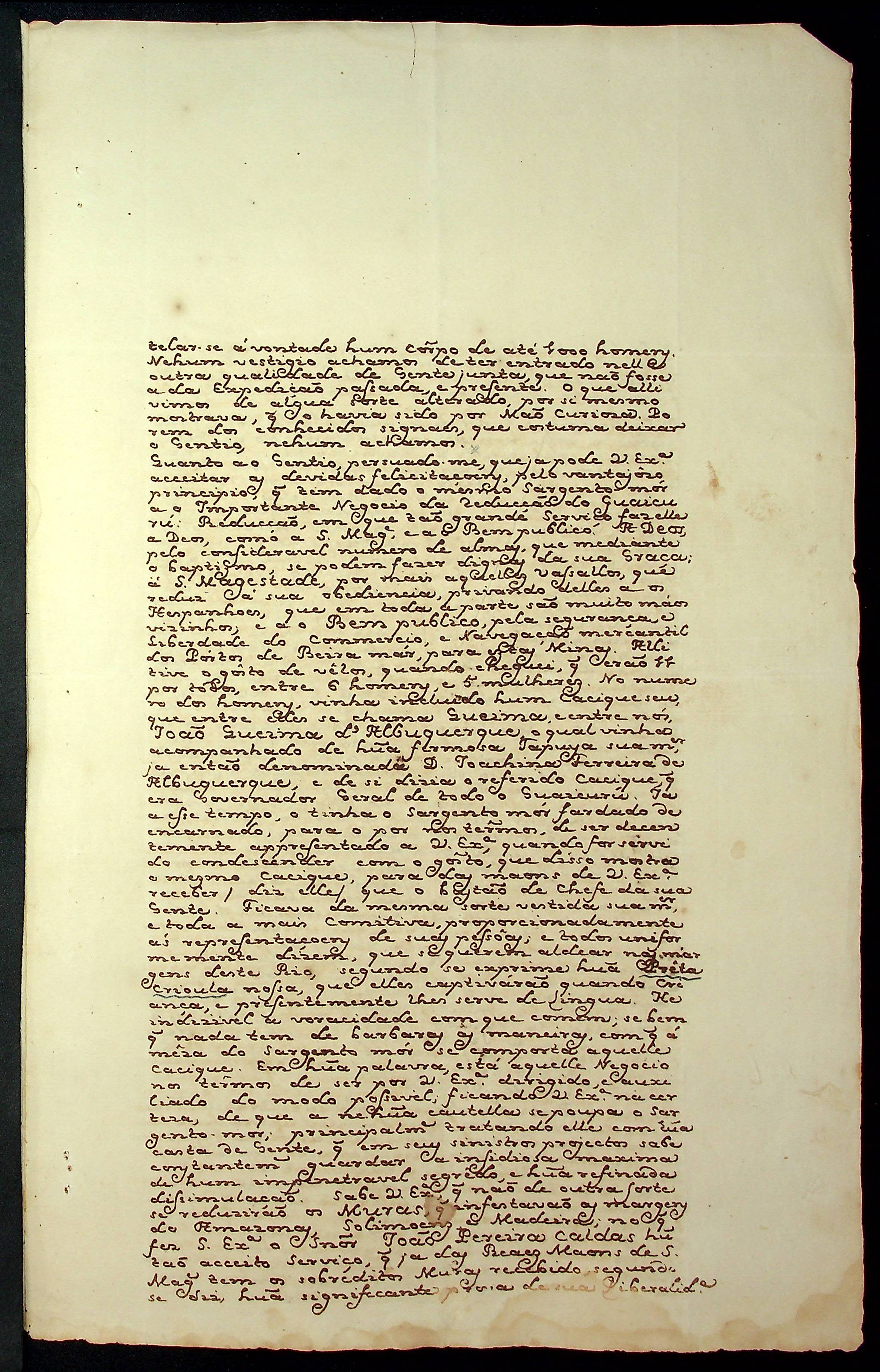 CARTA do Naturalista Alexandre Rodrigues Ferreira ao Governador e Capitão-General da Capitania de Mato Grosso João de Albuquerque de Melo Pereira e Cáceres, narrando a viagem feita a diversos lugares da Capitania e suas respectivas situações.