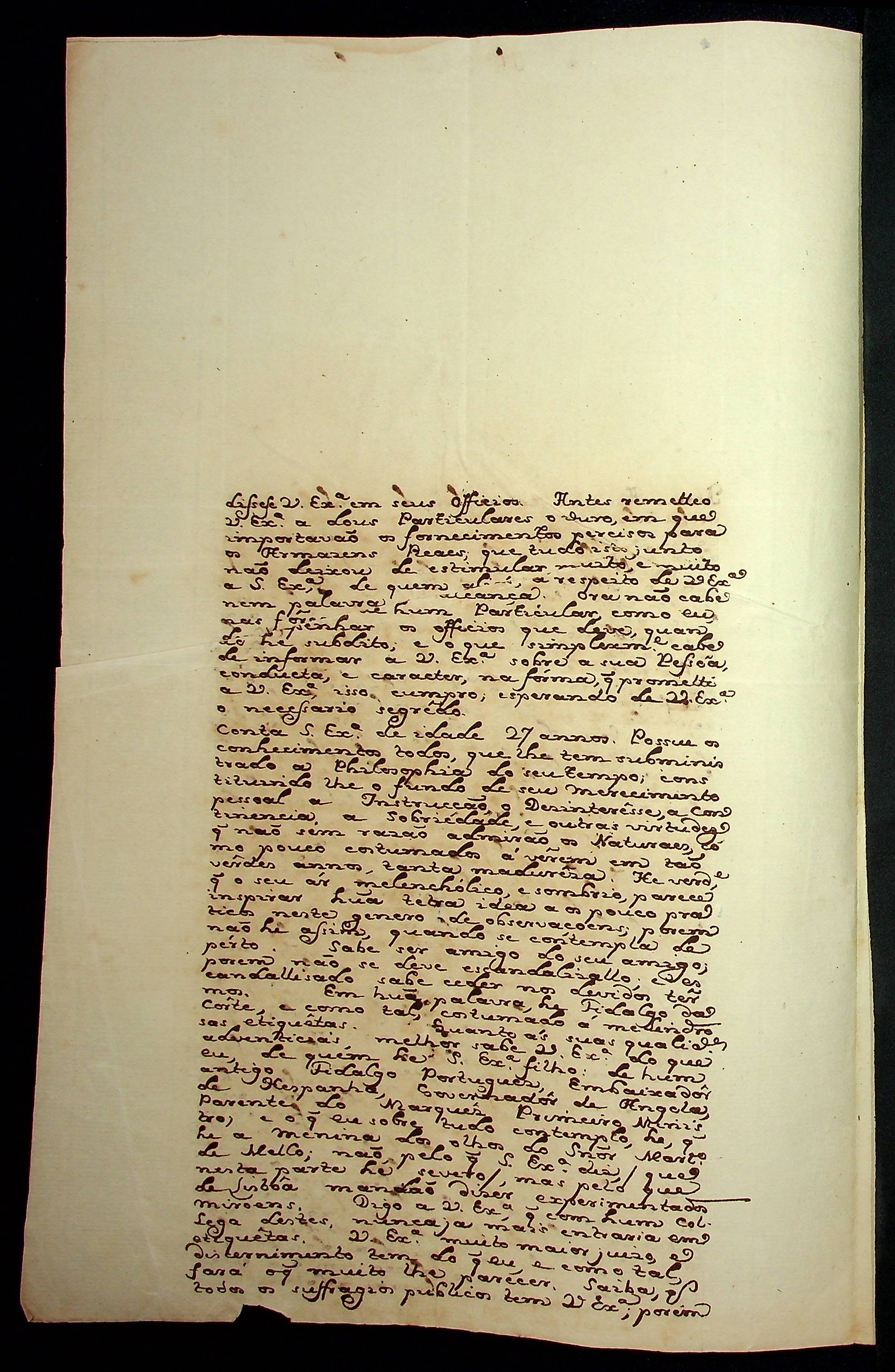 CARTA do Naturalista Alexandre Rodrigues Ferreira ao Governador e Capitão-General da Capitania de Mato Grosso João de Albuquerque de Melo Pereira e Cáceres, referente a sua chegada no Pará.