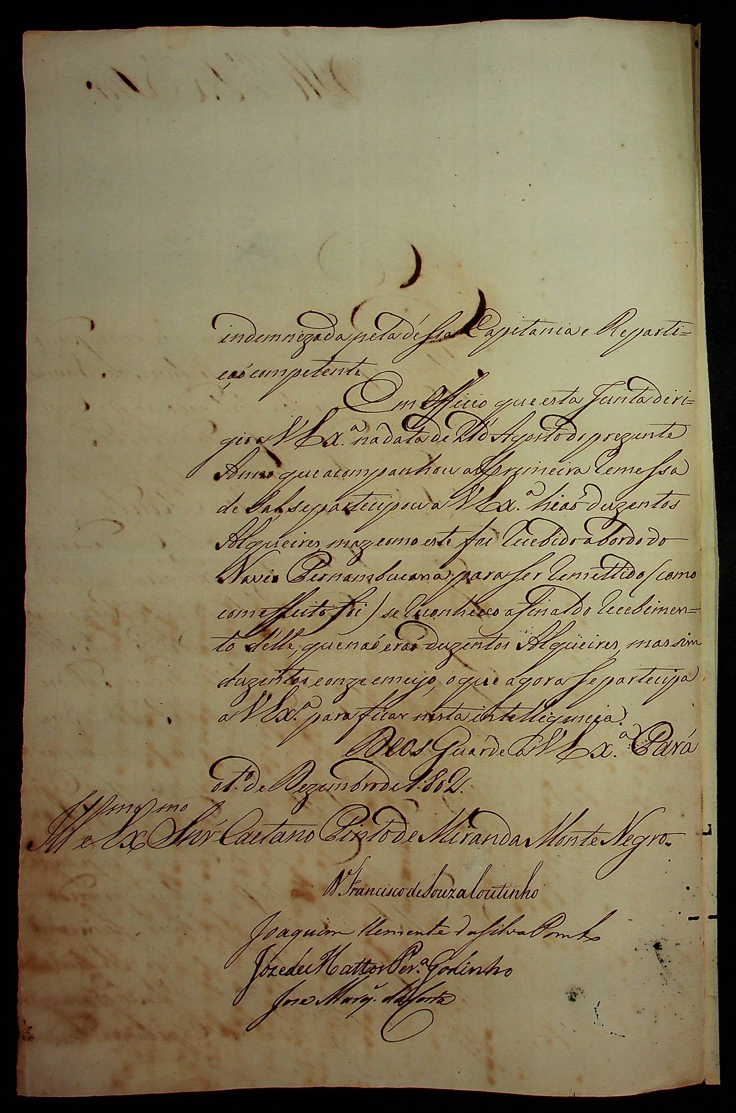 CARTA do Governador e Capitão-General da Capitania do Pará Francisco de Sousa Coutinho e outros ao Governador e Capitão-General da Capitania de Mato Grosso Caetano Pinto de Miranda e Montenegro.