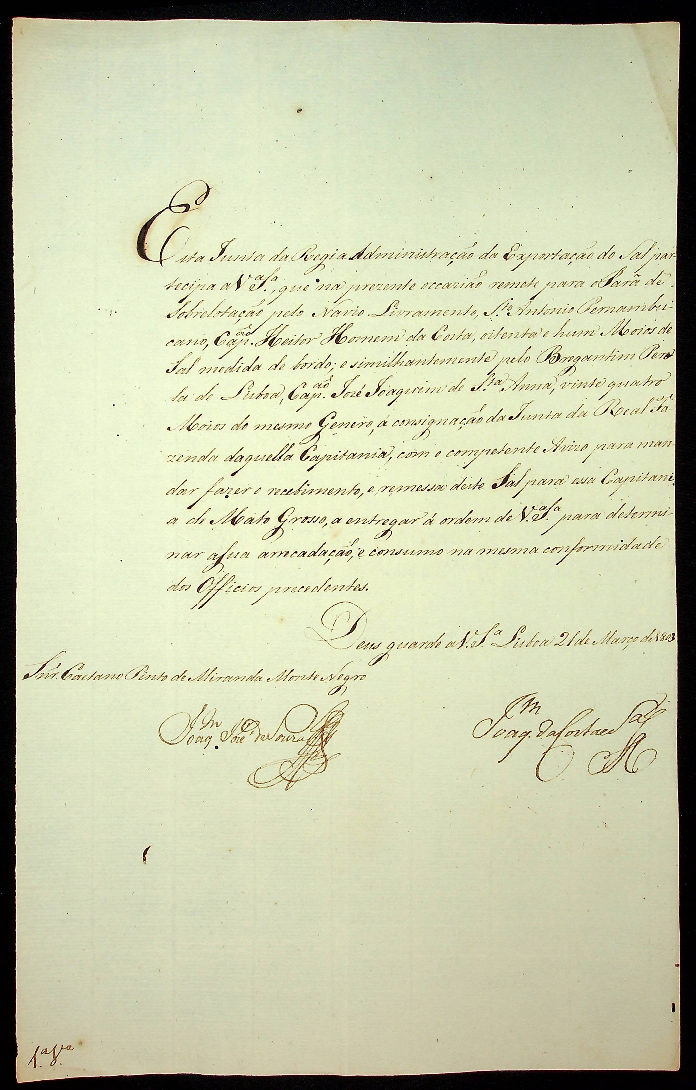 CARTA (Conjunto) de dez cartas da Junta da Administração da Exportação do Sal ao Governador e Capitão-General da Capitania de Mato Grosso Caetano Pinto de Miranda e Montenegro.