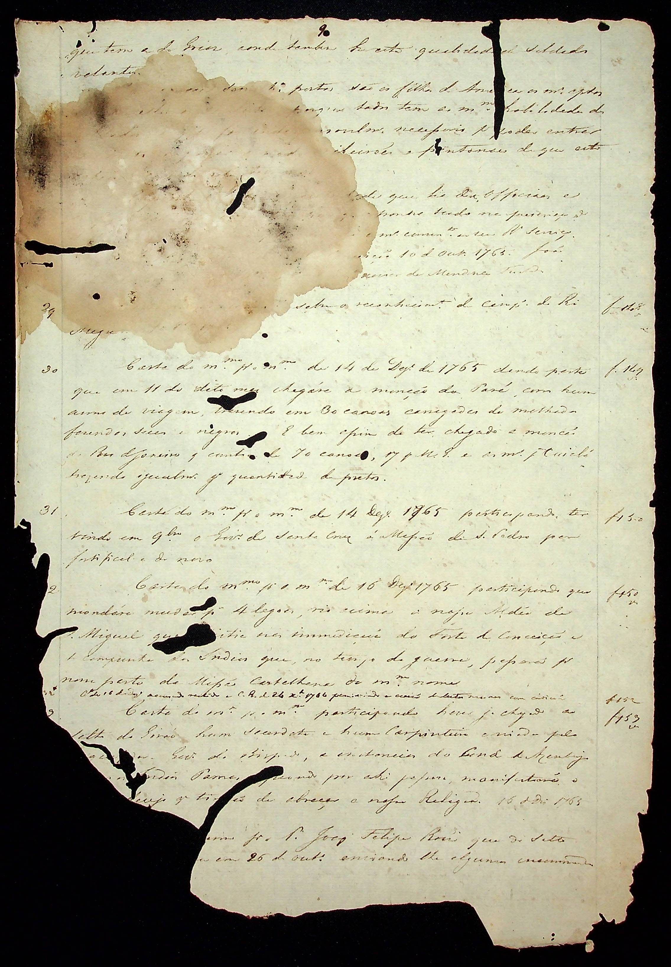 CÓDICES (cópia) apontamento do livro primeiro de correspondência da [Secretaria] de Estado de 1760 - 1768. Contém relação de correspondência e resumo parcial de algumas cartas.