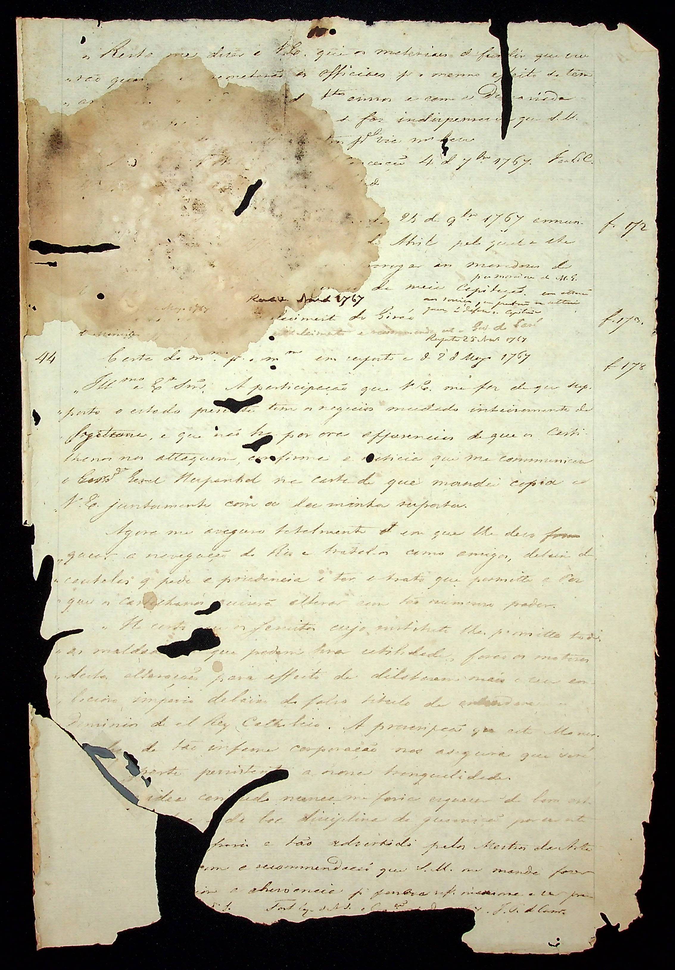 CÓDICES (cópia) apontamento do livro primeiro de correspondência da [Secretaria] de Estado de 1760 - 1768. Contém relação de correspondência e resumo parcial de algumas cartas.