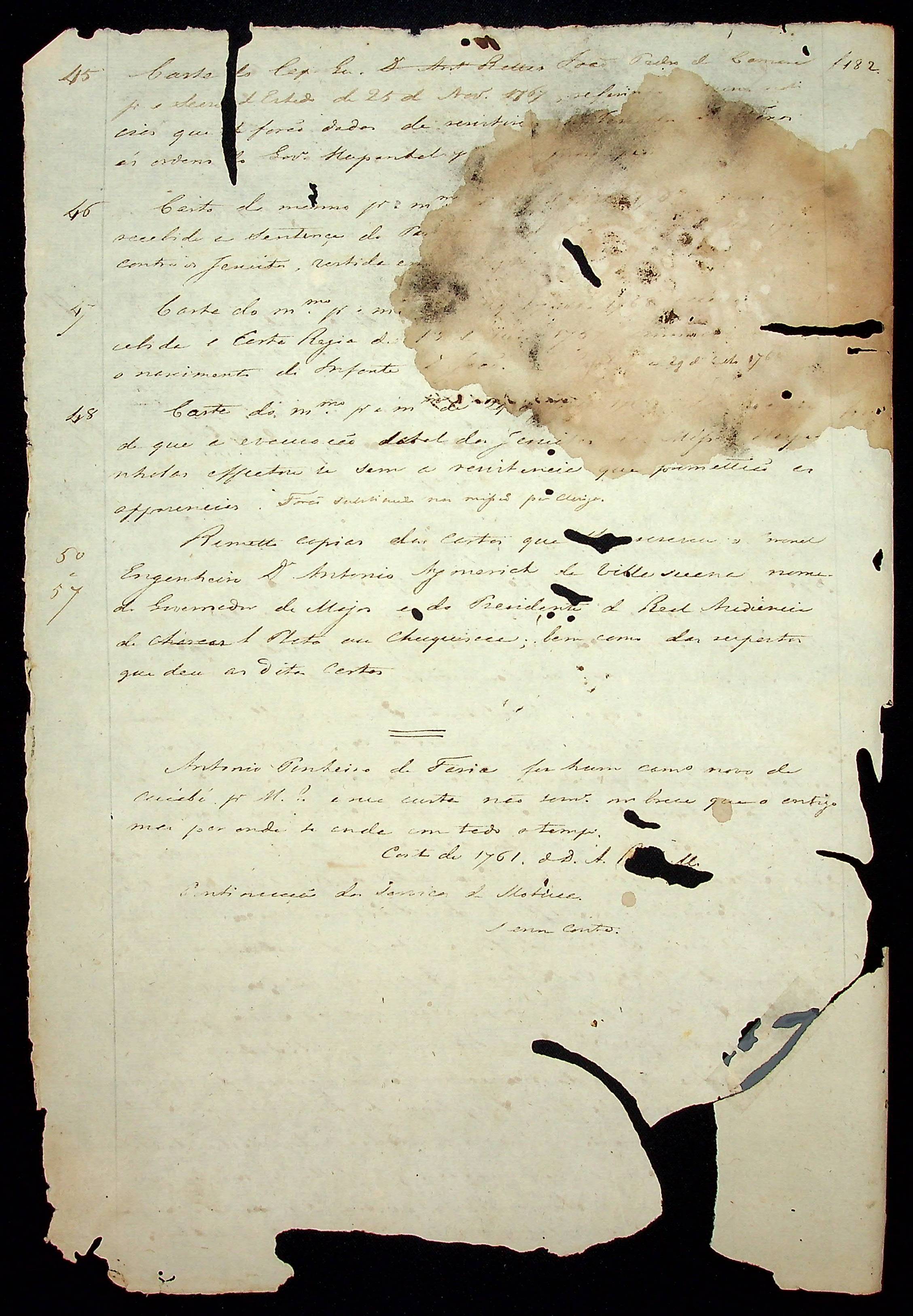 CÓDICES (cópia) apontamento do livro primeiro de correspondência da [Secretaria] de Estado de 1760 - 1768. Contém relação de correspondência e resumo parcial de algumas cartas.