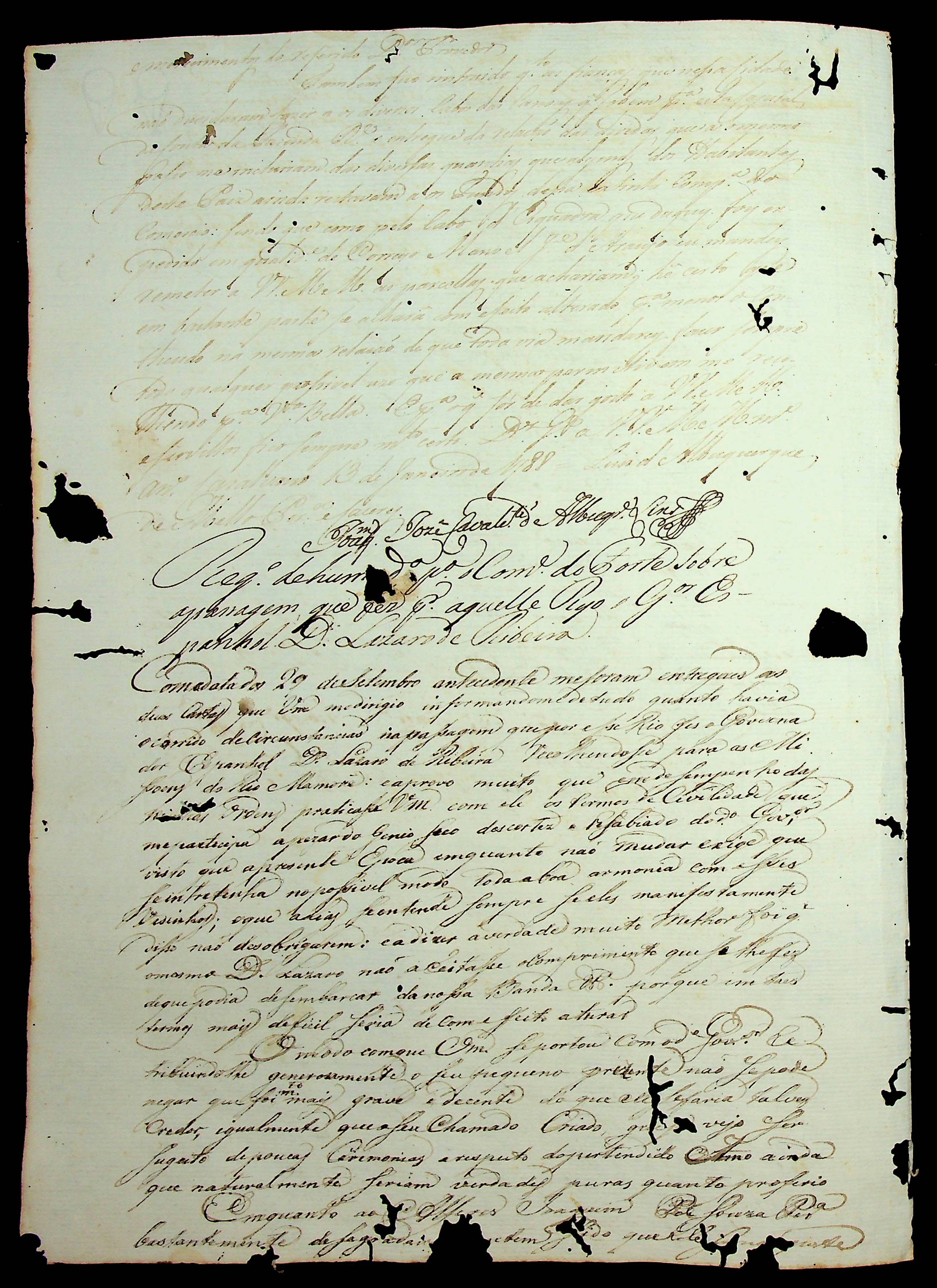 CÓDICE (Incompleto/Cópia) Conjunto de Cartas enviadas ao Governador e Capitão-General da Capitania de Mato Grosso Luiz de Albuquerque de Melo Pereira e Cáceres, copiladas pelo Secretário de Governo Joaquim José Cavalcanti de Albuquerque.