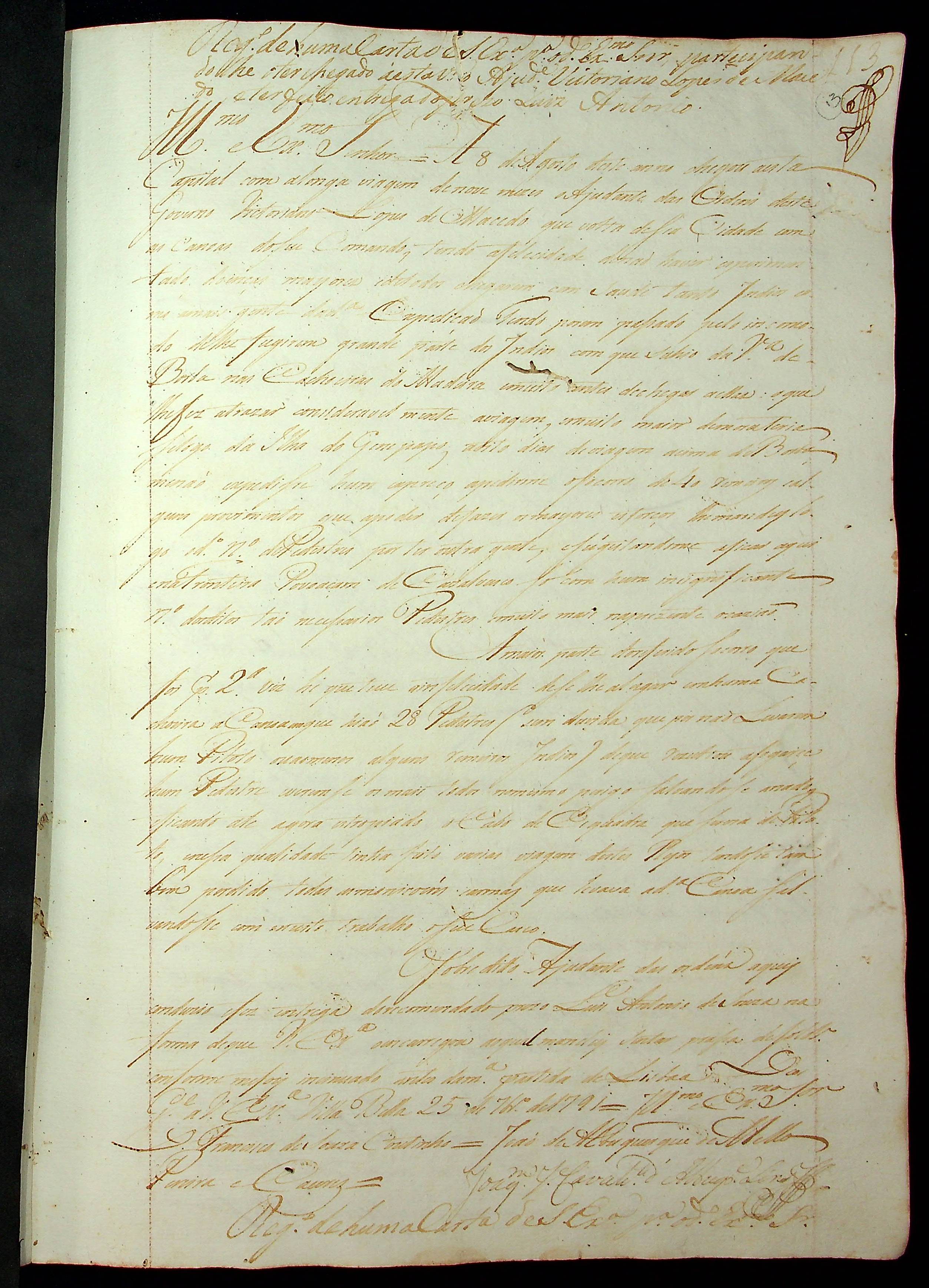 CÓDICE (cópia/incompleto) conjunto de 28 cartas enviadas ao Governador e Capitão General da Capitania de Mato Grosso João de Albuquerque de Melo Pereira e Cáceres.