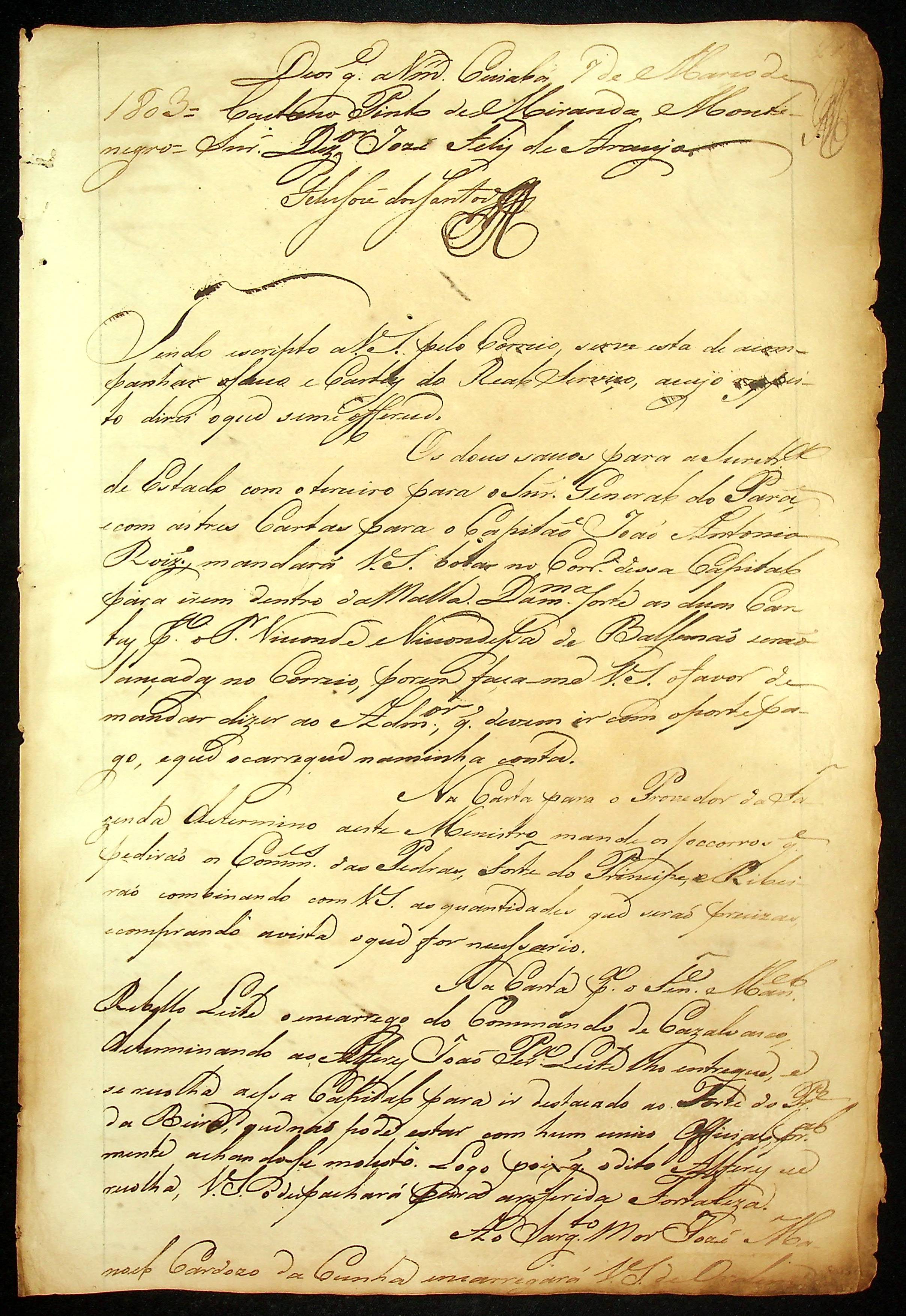 CÓDICES (fragmento) de Cópias de partes de cartas registradas pelo [Secretário de Governo] Félix José dos Santos.