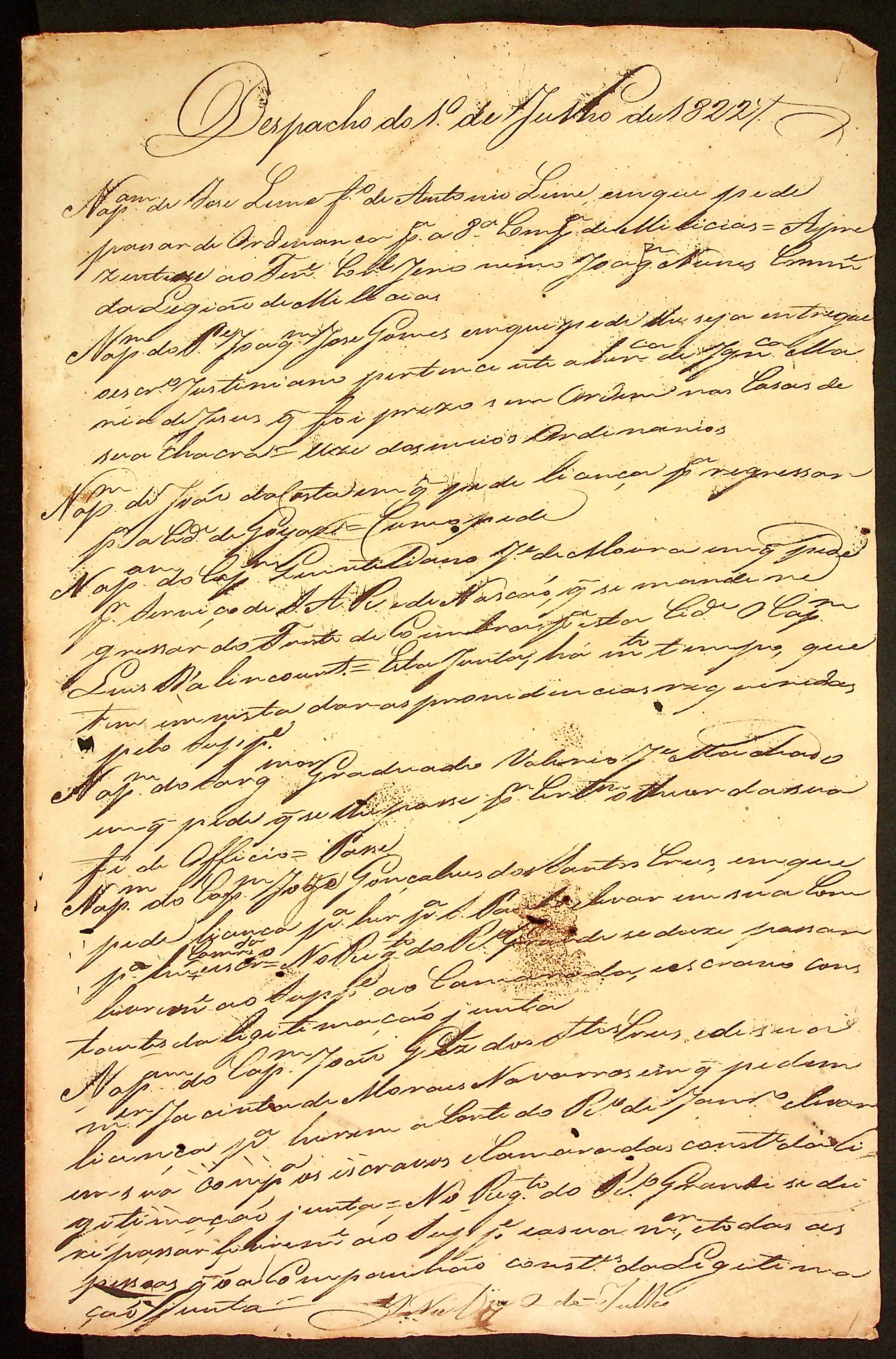 CÓDICE (incompleto) dos despachos da [Junta Governativa Provisória da Província de Mato Grosso] nos meses de Julho e Outubro de 1822.