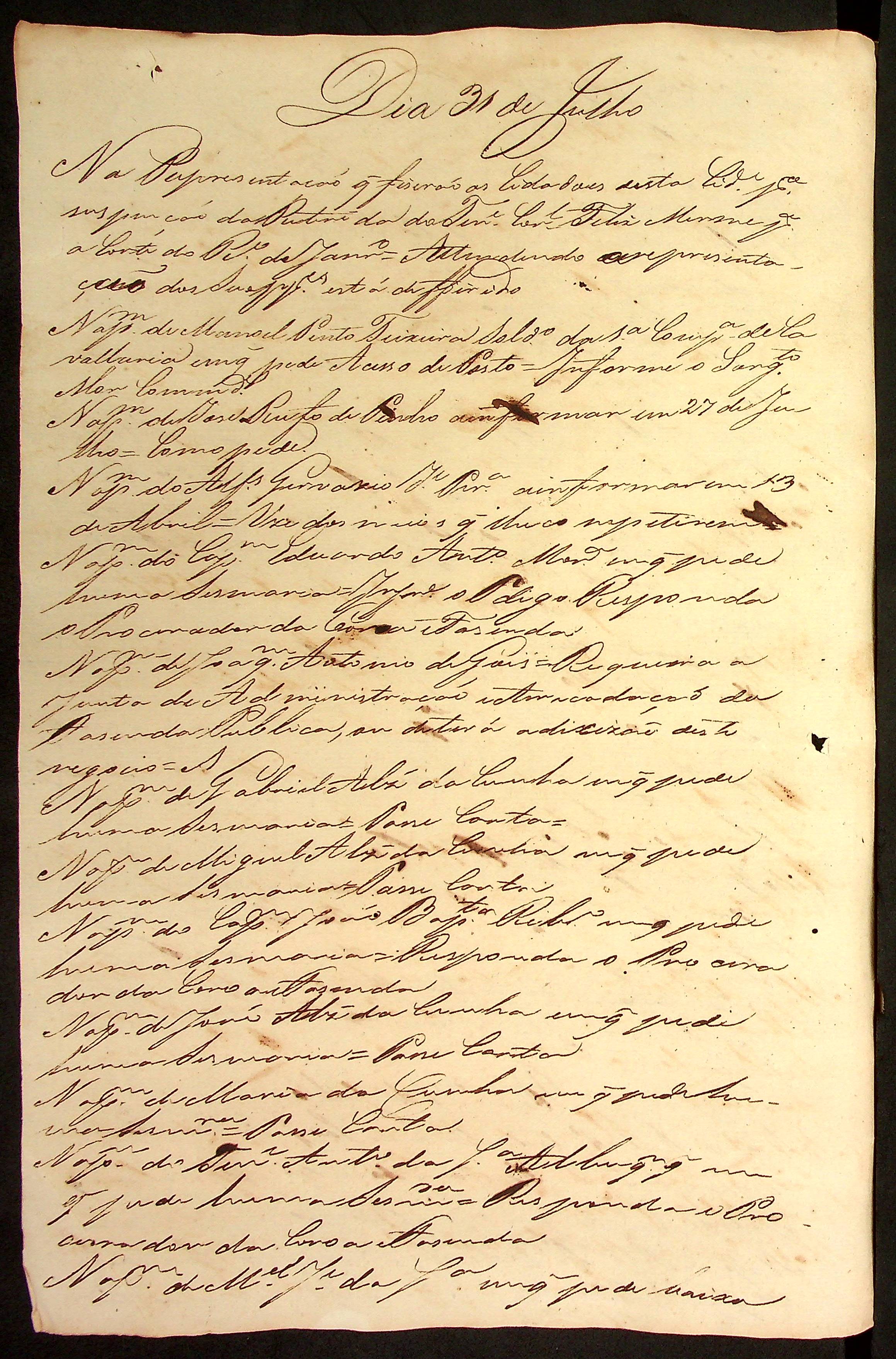 CÓDICE (incompleto) dos despachos da [Junta Governativa Provisória da Província de Mato Grosso] nos meses de Julho e Outubro de 1822.