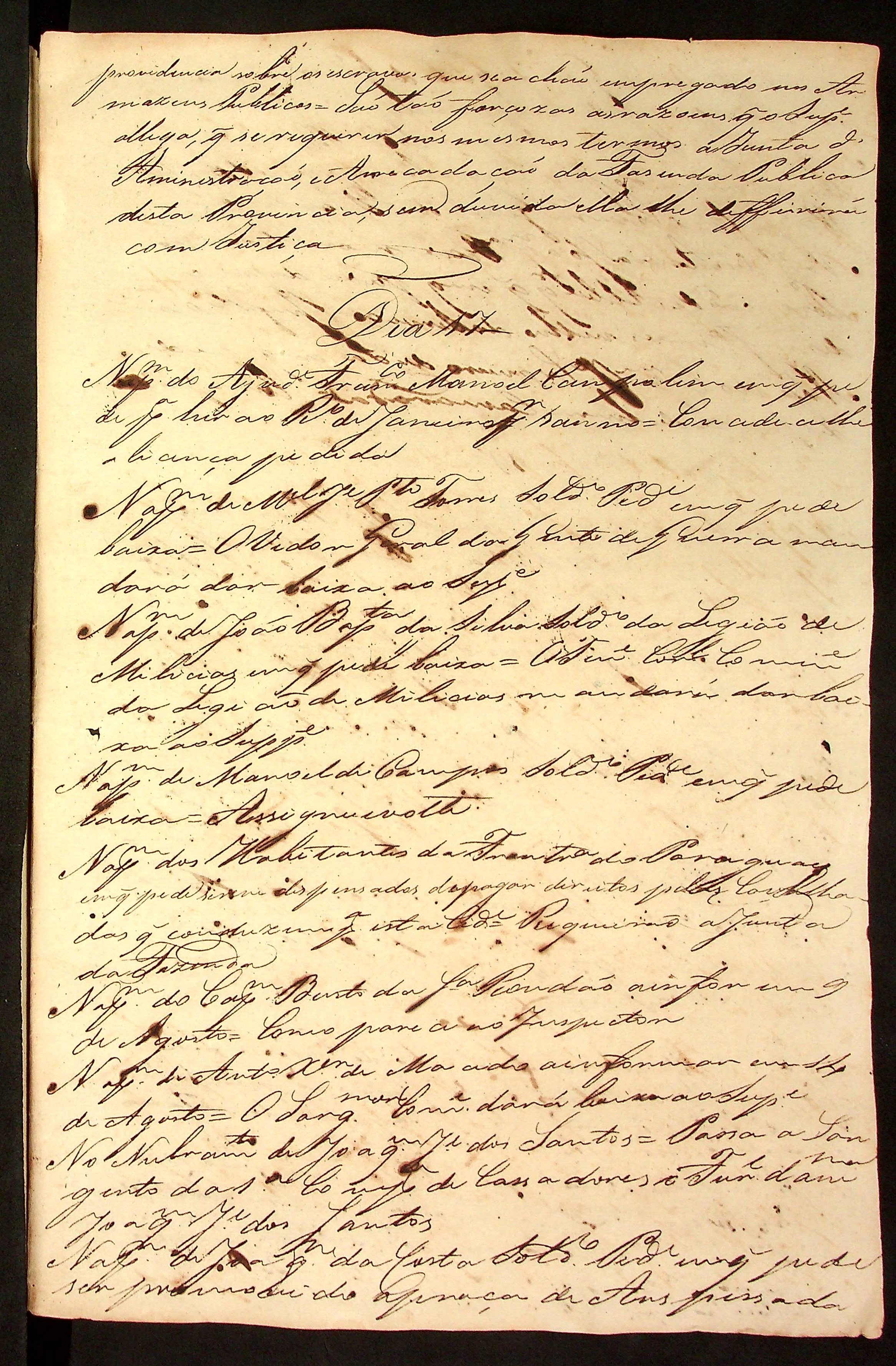 CÓDICE (incompleto) dos despachos da [Junta Governativa Provisória da Província de Mato Grosso] nos meses de Julho e Outubro de 1822.