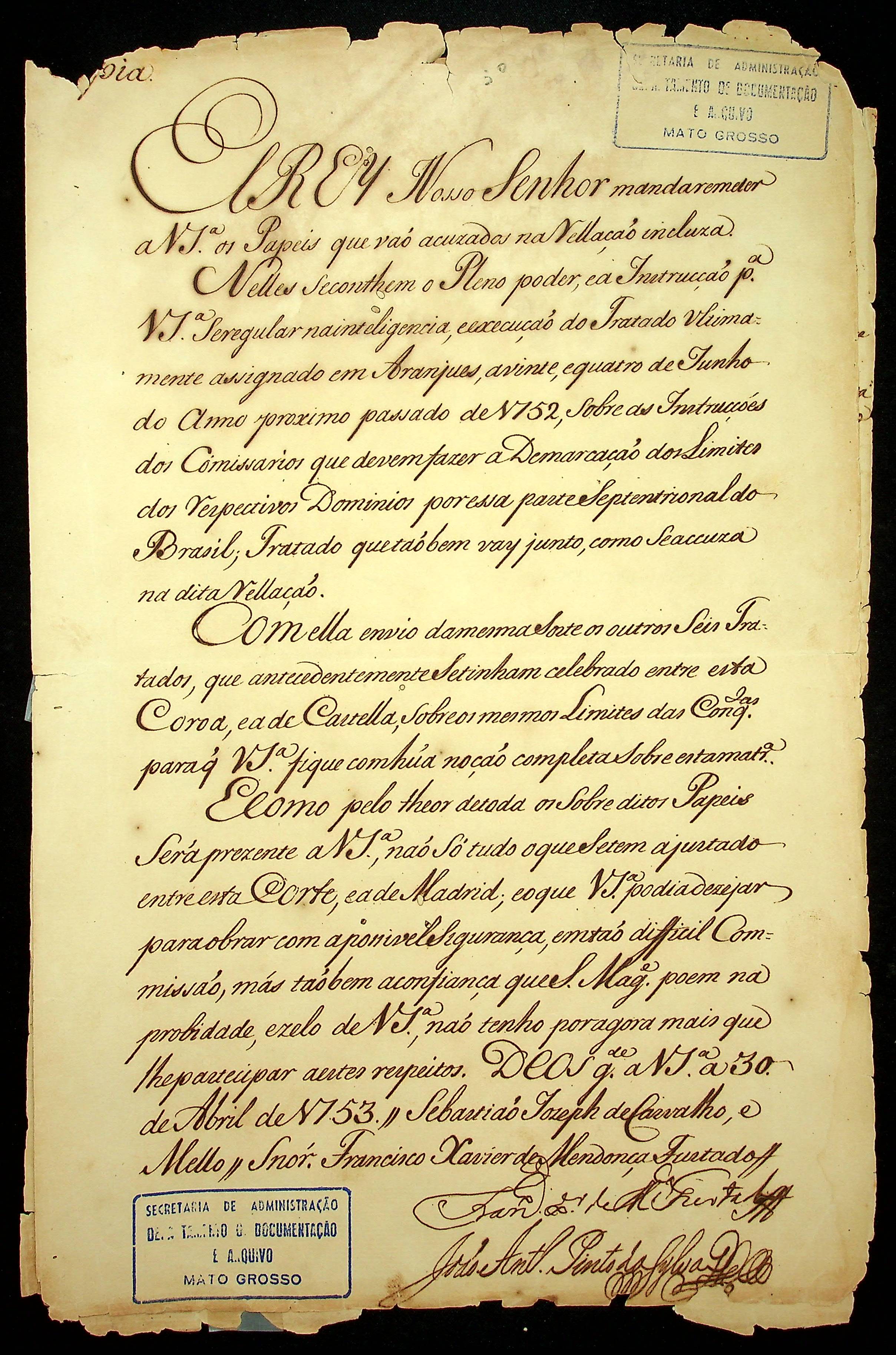 CARTA (cópia) de Sebastião José de Carvalho e Melo a Francisco Xavier de Mendonça Furtado informando o envio de papéis referentes à demarcãção dos limites, conforme relação anexa.