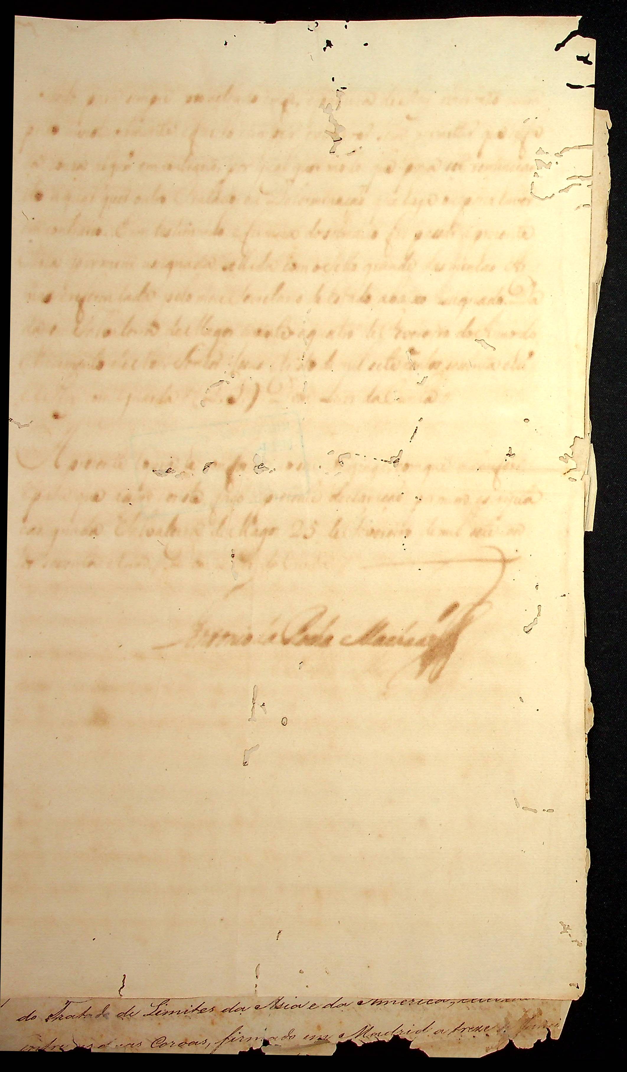 CARTA de confirmação, aprovação e ratificação de Dom Luís da Cunha referente ao Tratado de Limites anulado.
