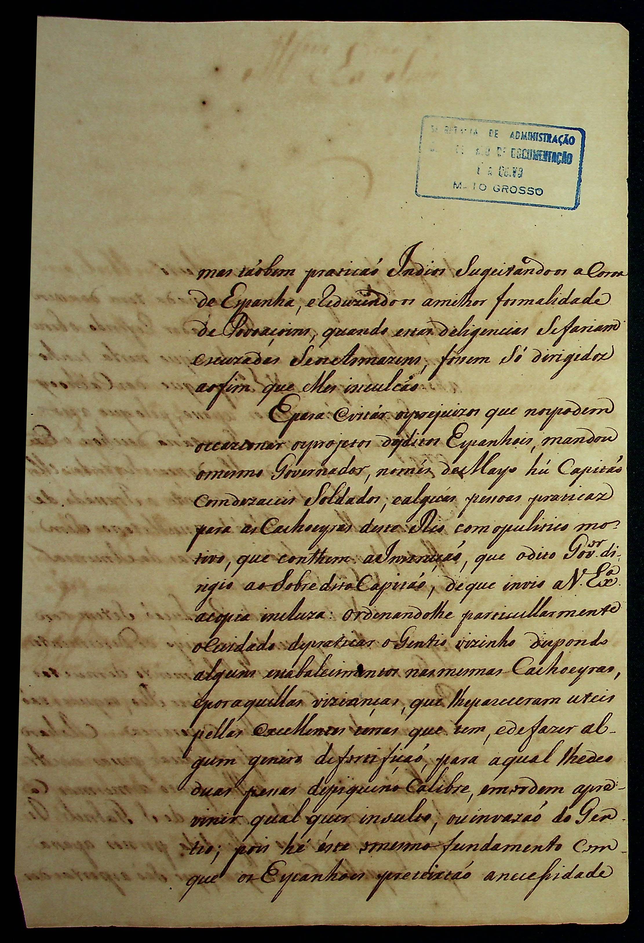 CARTA de Nuno da Cunha de Ataíde de [...] ao Governador e Capitão General da Capitania de Mato Grosso Antônio Rolim de Moura, sobre as diligências da Demarcação de Limites feitas na região das cachoeiras.