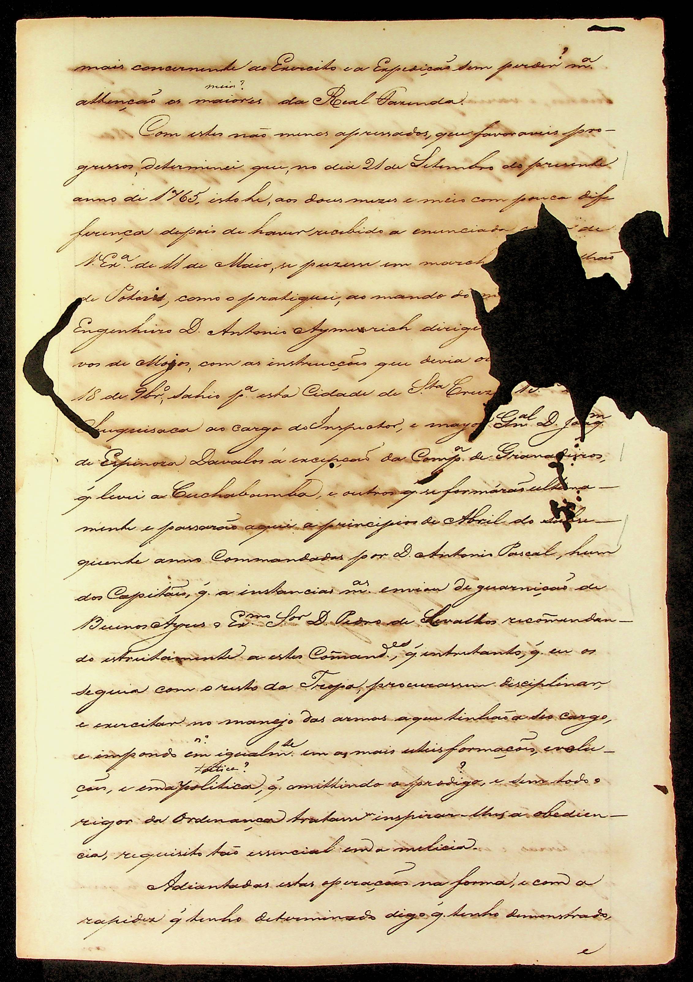 CARTA (cópia) da carta que escreveu de Santa Cruz de La Sierra ao Vice Rei de Lima, a General da expedição, D. João de Pestanha, dando a razão porque não havia desalojado aos portugueses da estacada de Santa Rosa de que lhe faz cargos os mesmo Vice Rei.