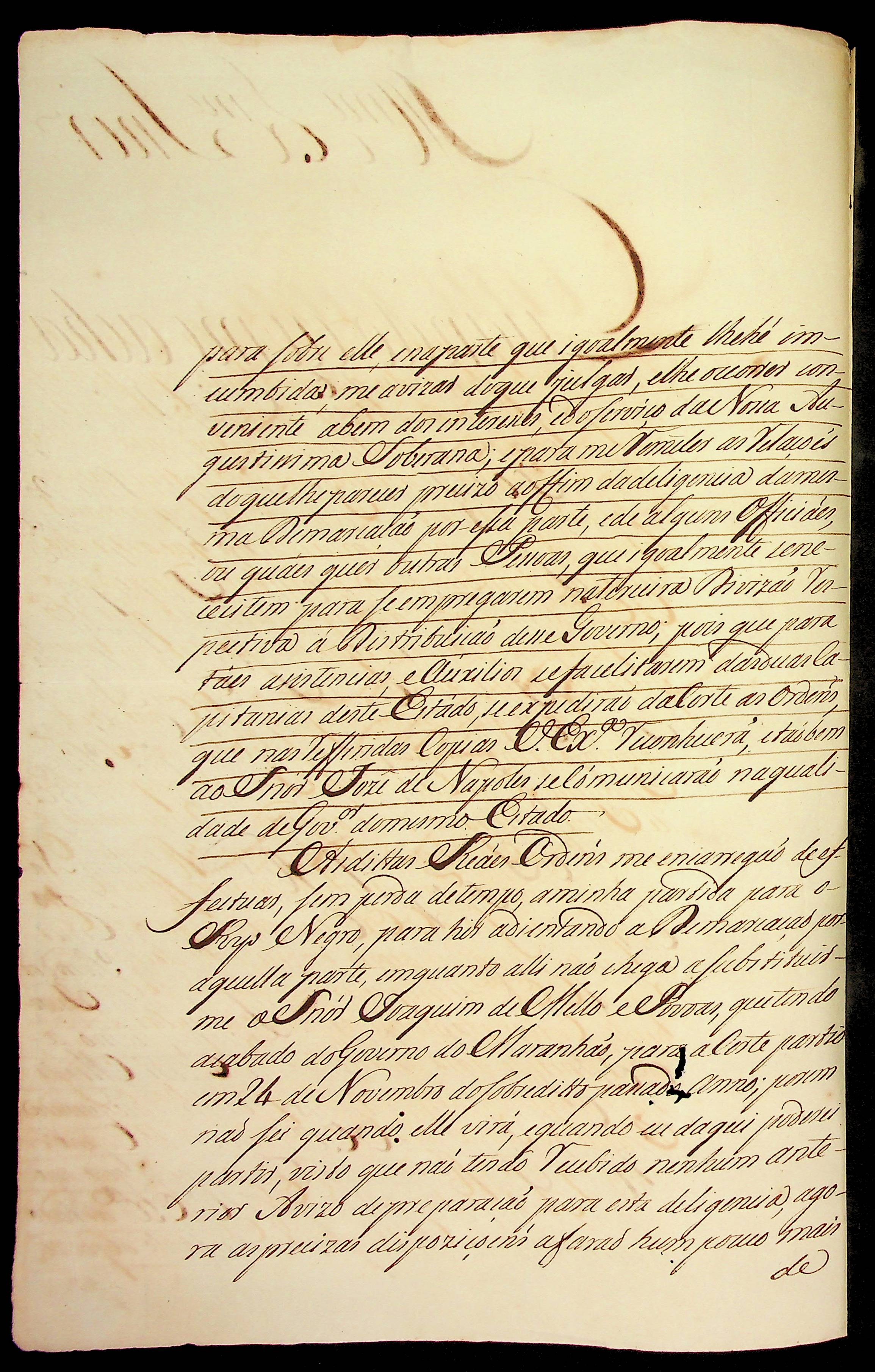 CARTA de João Pereira Caldas ao Governador e Capitão General da Capitania de Mato Grosso Luís de Albuquerque de Melo Pereira e Cáceres, referente as duas partidas das demarcações de limites.