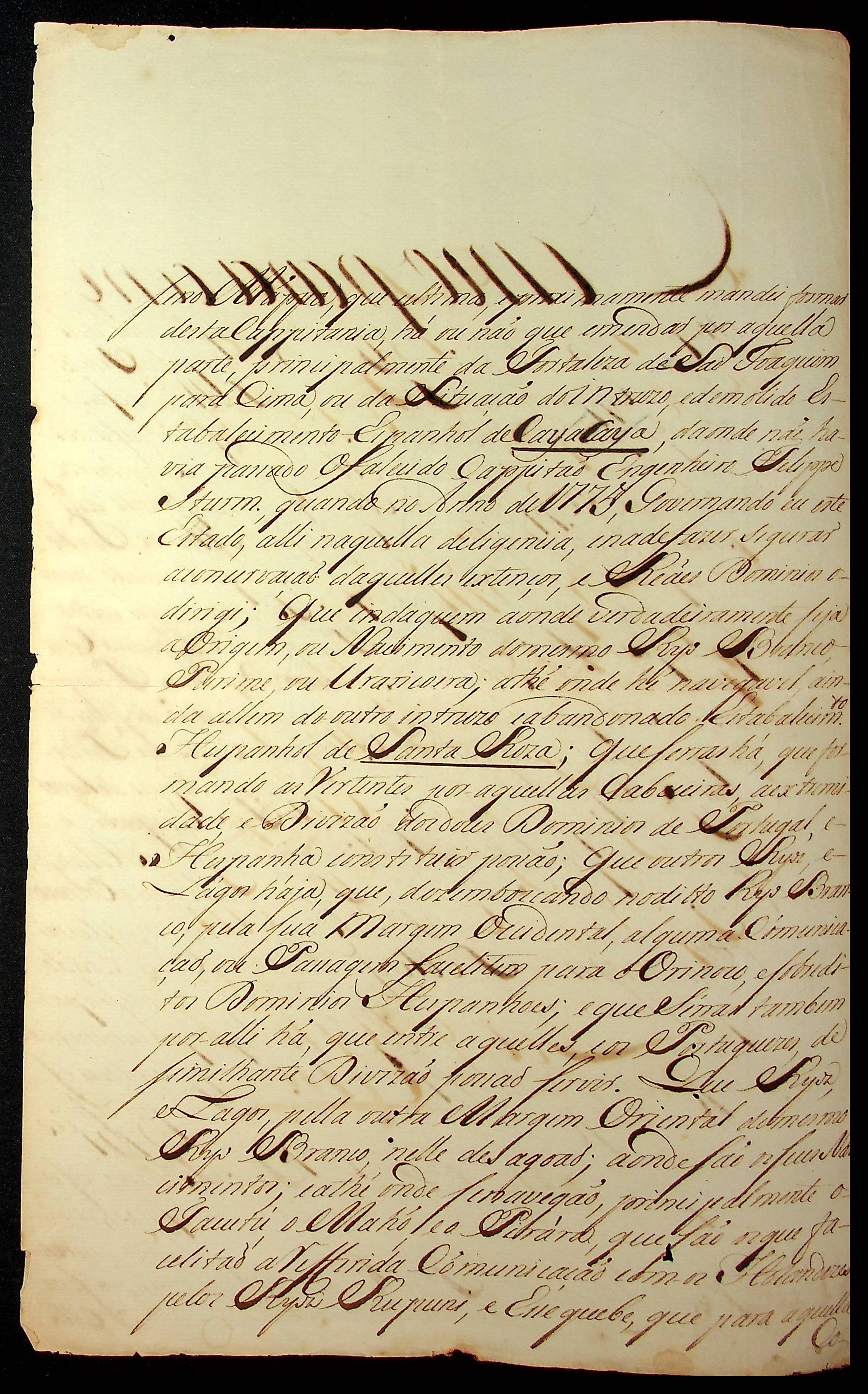 CARTA de João Pereira Caldas ao Engenheiro Ricardo Franco de Almeida Serra e o matemático Antônio Pires da Silva Pontes solicitando informação certa se pelo rio Branco ou por outro qualquer rio.