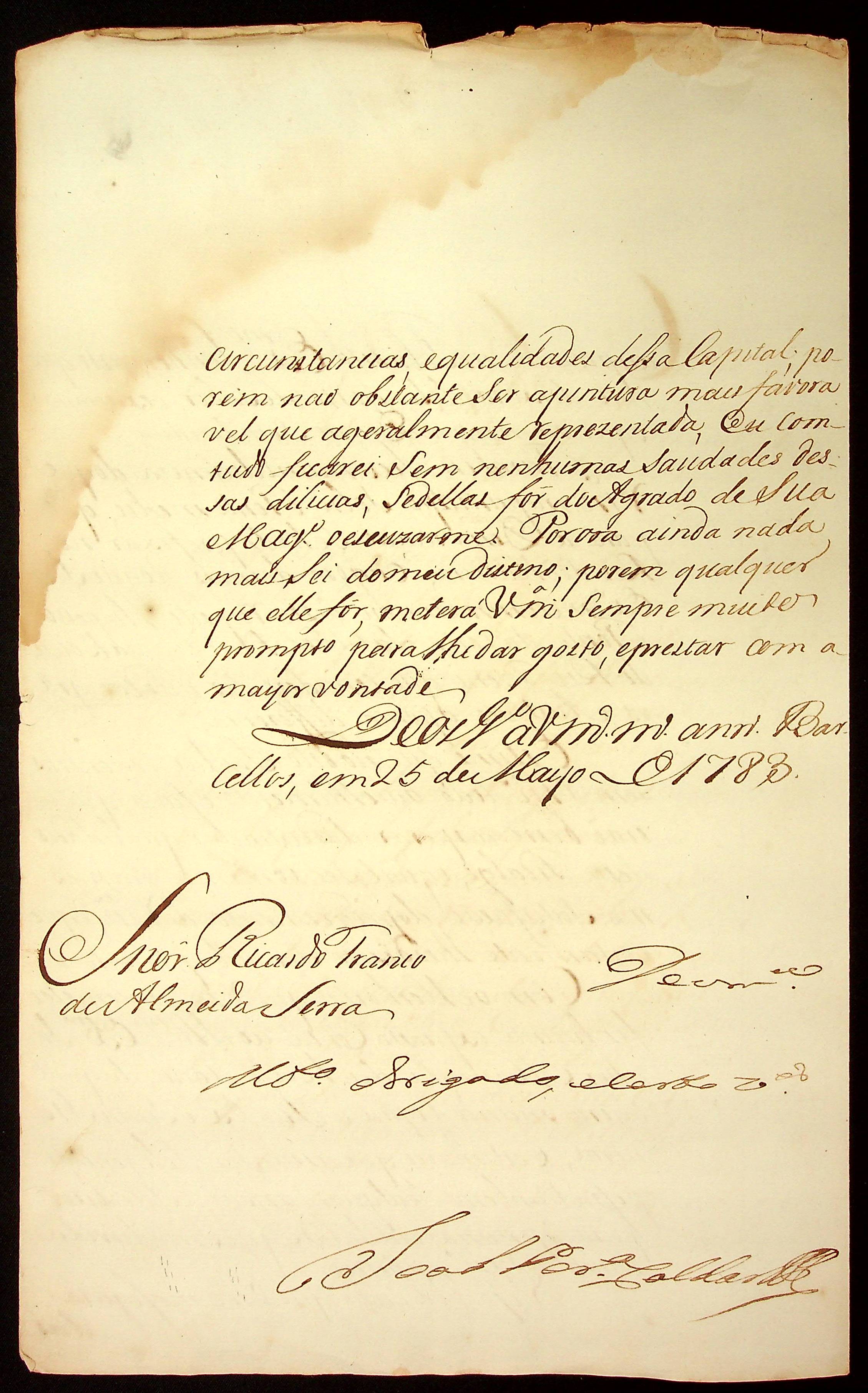 CARTA de João Pereira Caldas ao Capitão Engenheiro Ricardo Franco de Almeida Serra sobre a viagem relativa à demarcação de limites.