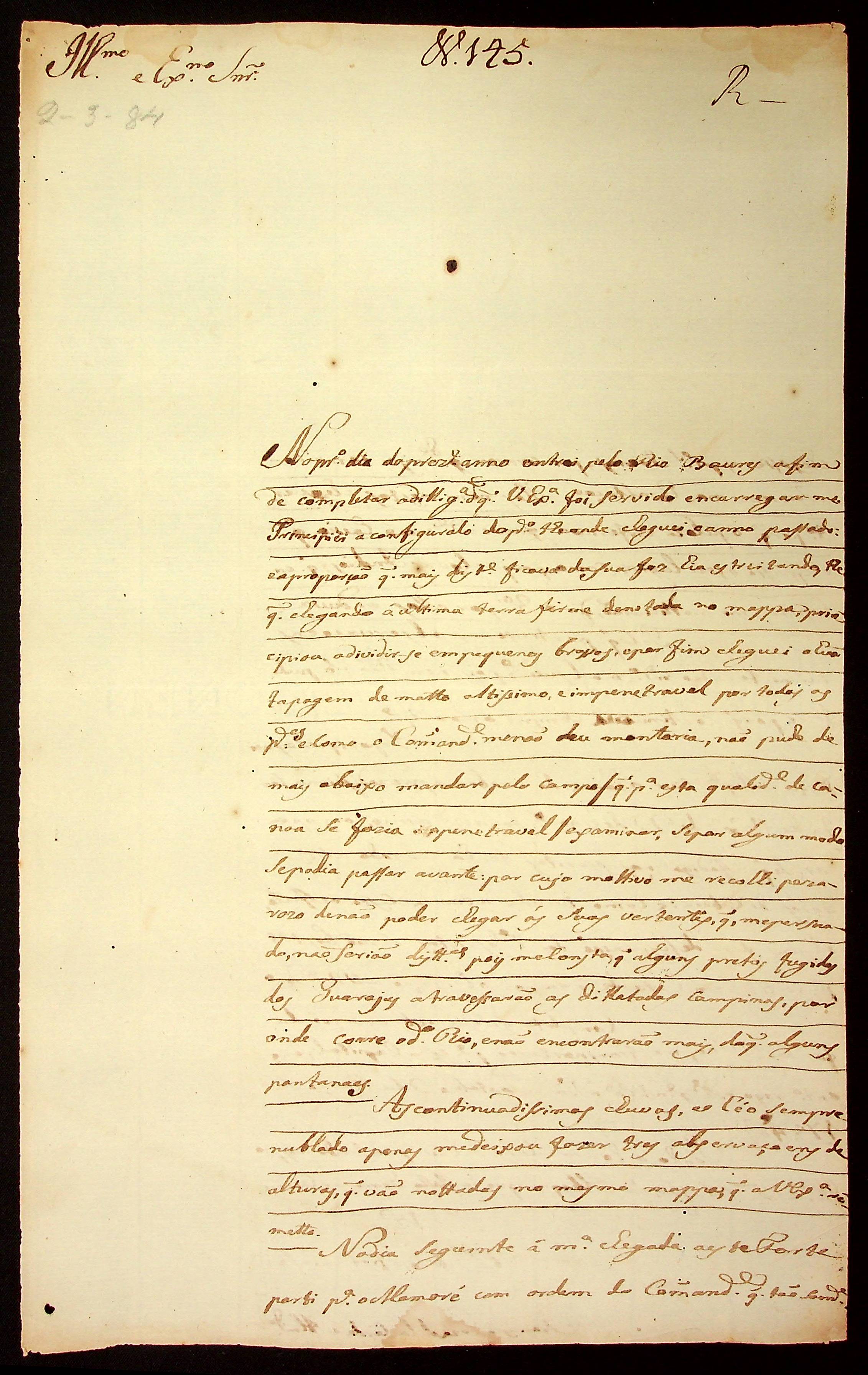 CARTA do astrônomo demarcador Francisco José de Lacerda e Almeida enviada ao Governador e Capitão General Luís de Albuquerque de Melo Pereira e Cáceres.