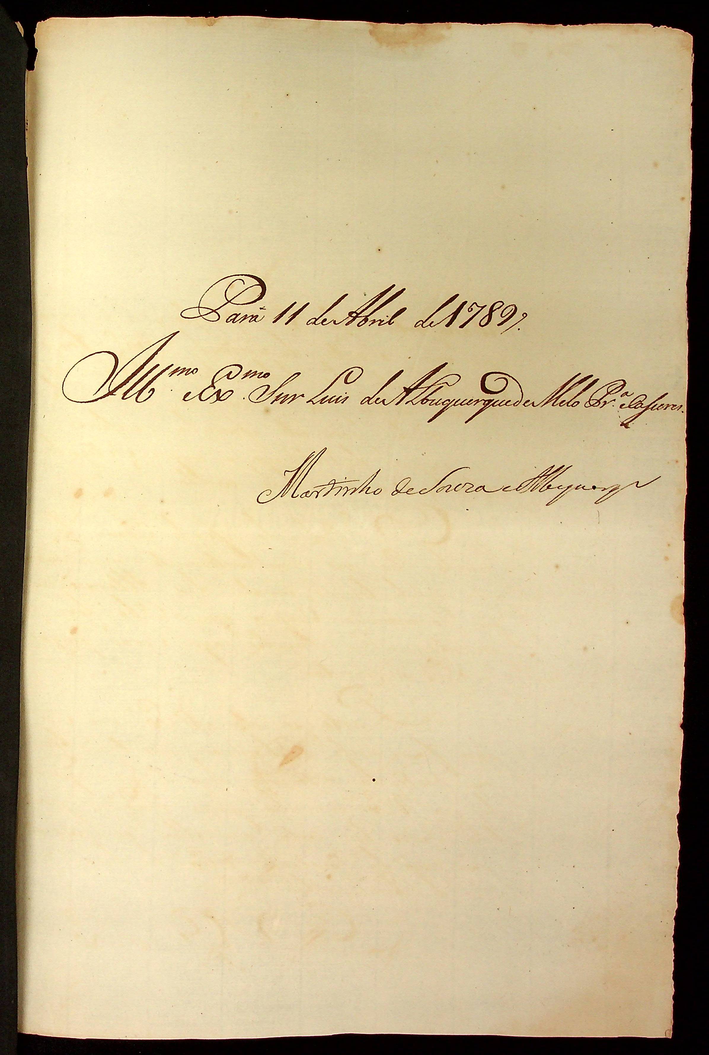 CARTA do Governador e Capitão General da Capitania do Grão Pará e Maranhão Martinho de Souza e Albuquerque ao Governador e Capitão General Luís de Albuquerque de Melo Pereira e Cáceres.