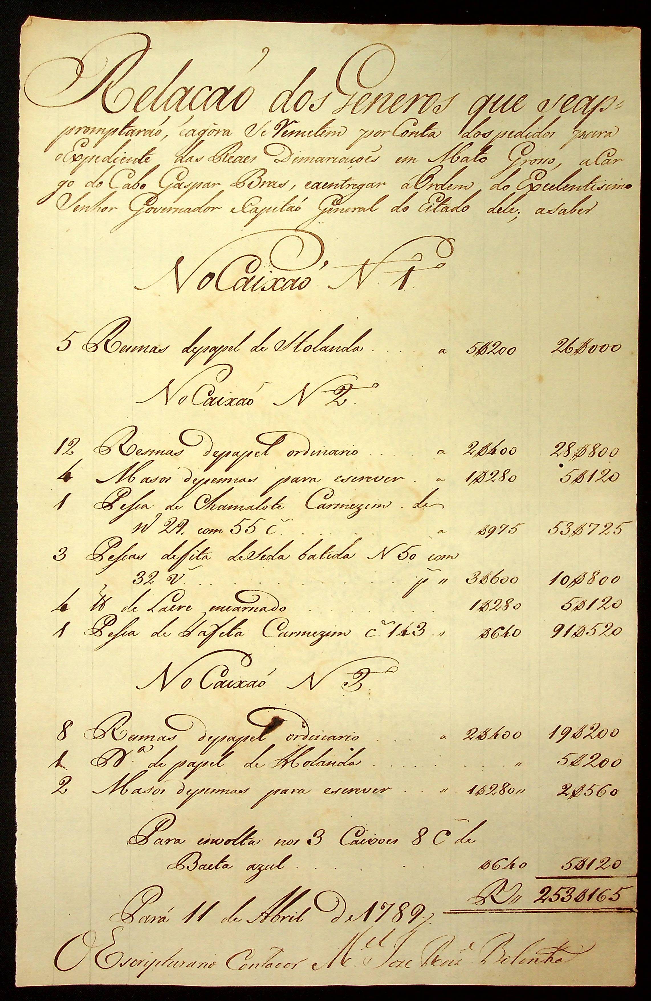 CARTA do Governador e Capitão General da Capitania do Grão Pará e Maranhão Martinho de Souza e Albuquerque ao Governador e Capitão General Luís de Albuquerque de Melo Pereira e Cáceres.