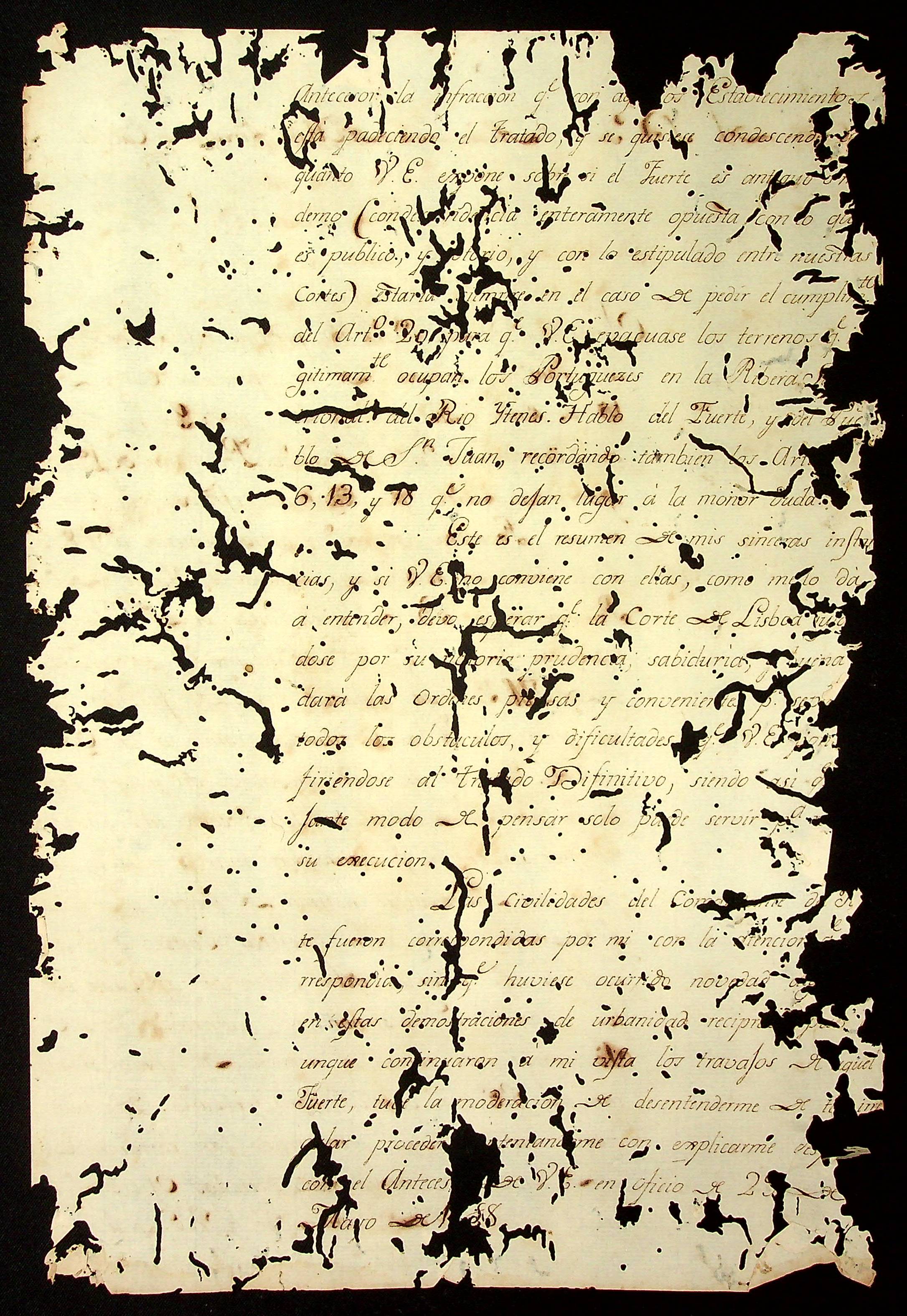 CARTA de Lázaro de Ribera ao Governador e Capitão General da Capitania de Mato grosso João de Albuquerque de Melo Pereira e Cáceres.