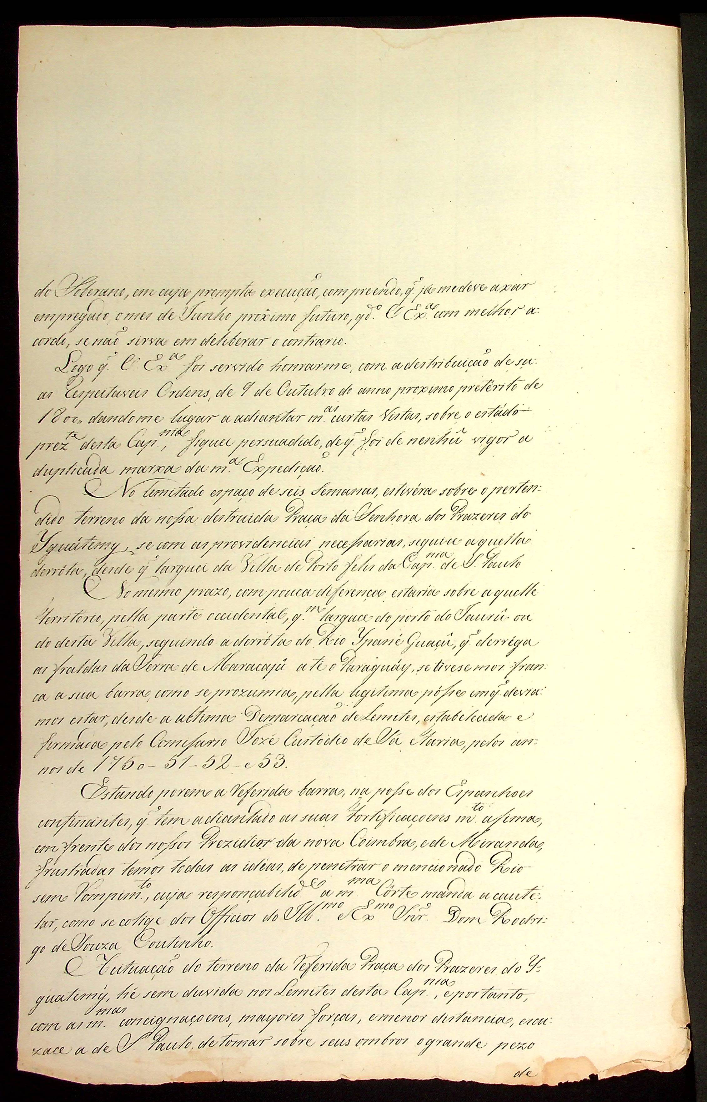 CARTA do Tenente Coronel e comissário Cândido Xavier de Almeida Souza ao Governador e Capitão General da Capitania de Mato Grosso Caetano Pinto de Miranda e Montenegro.
