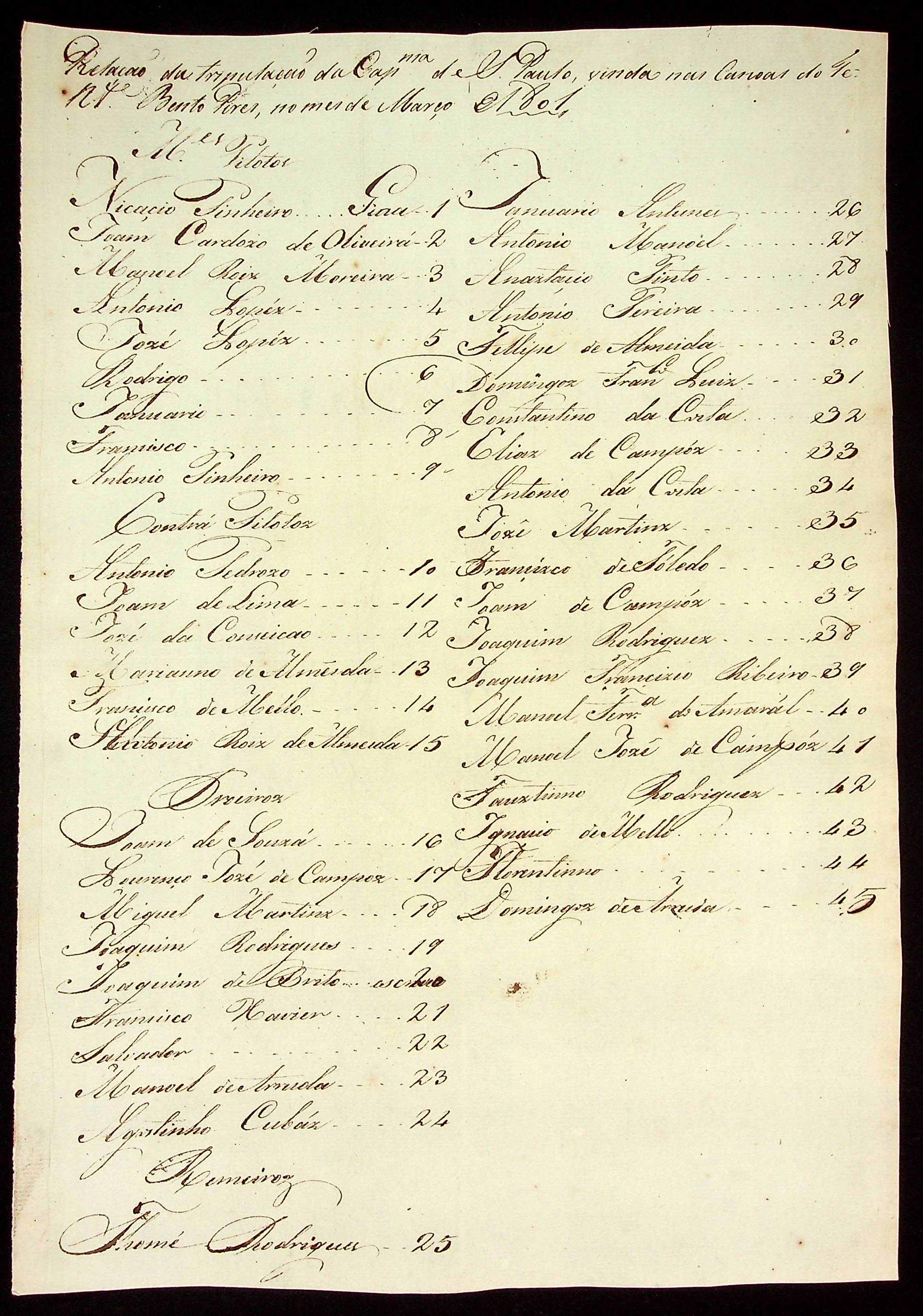 CARTA (cópia) do Tenente Coronel e comissário Cândido Xavier de Almeida Souza ao Mestre de Campo José Paes Falcão das Neves.