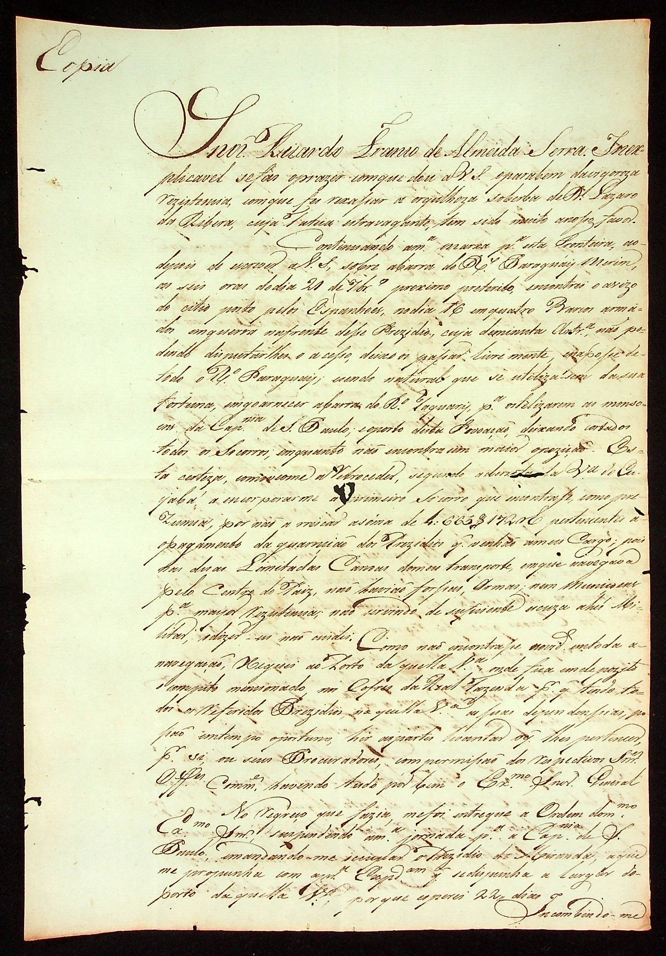 CARTA do Tenente Coronel e comissário Cândido Xavier de Almeida Souza ao Tenenete Coronel e Comandante da fronteira Ricardo Franco de Almeida Serra.