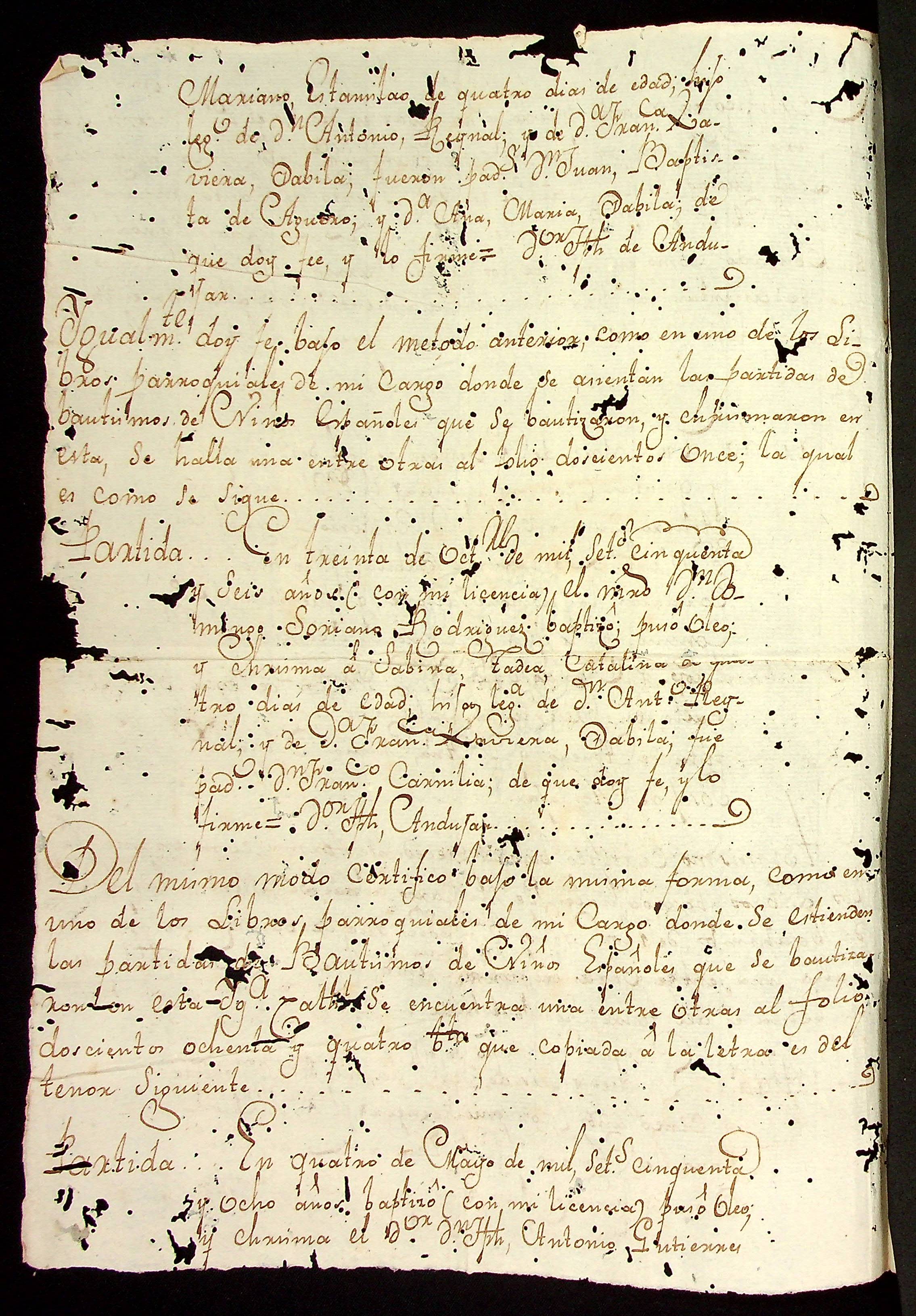 CERTIDÃO expedida por Vicente Anzoyo das partidas de demarcação dos domínios espanhóis.