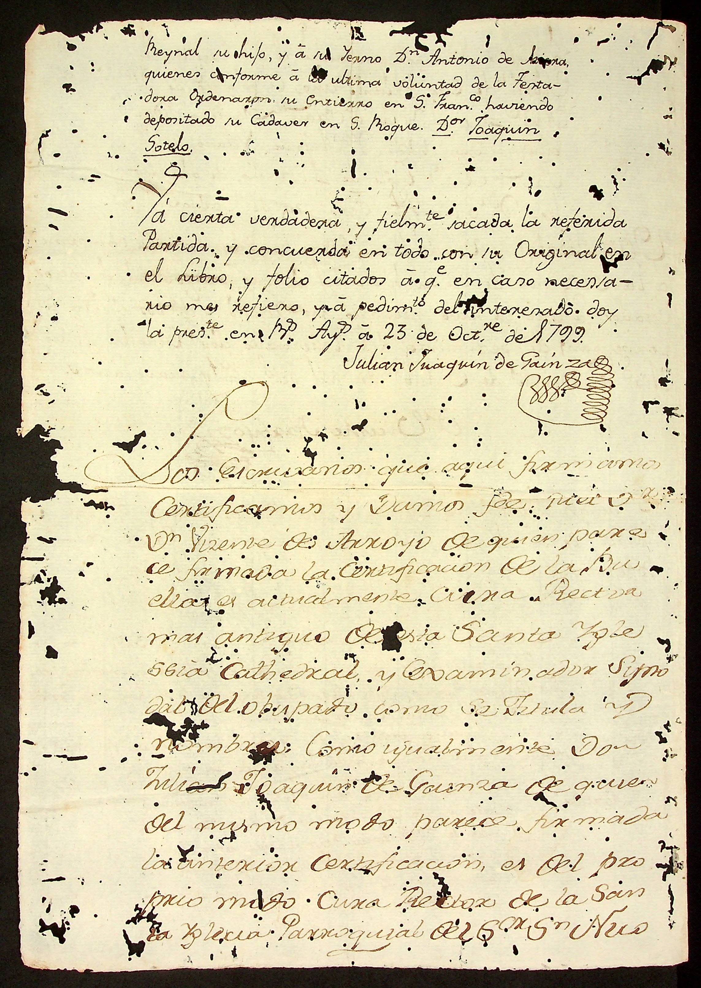 CERTIDÃO expedida por Vicente Anzoyo das partidas de demarcação dos domínios espanhóis.
