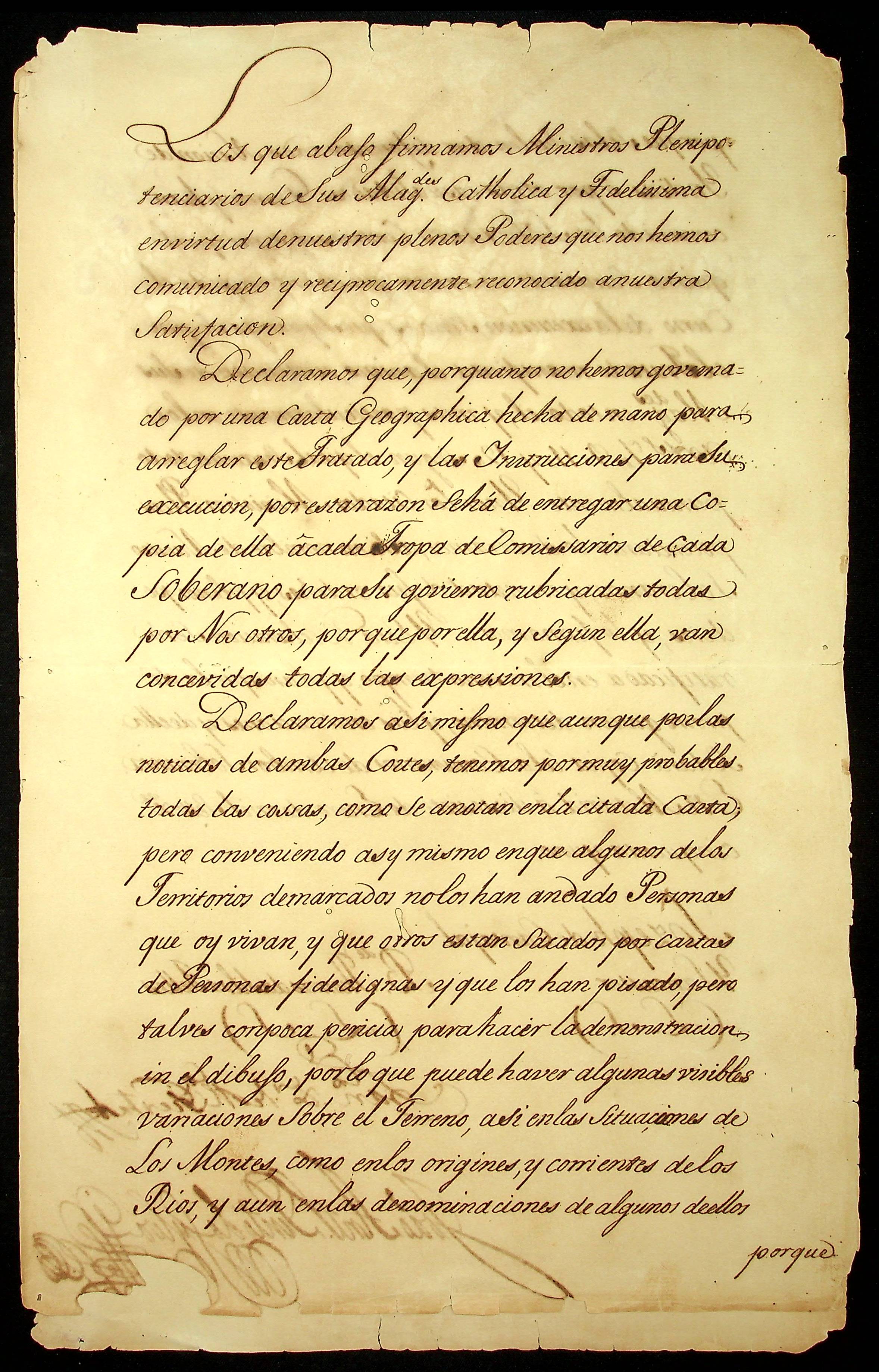 DECLARAÇÃO dos Ministros plenipotenciários de sua Magestade Católica e fidelissima das instruções a serem entregues aos comissários