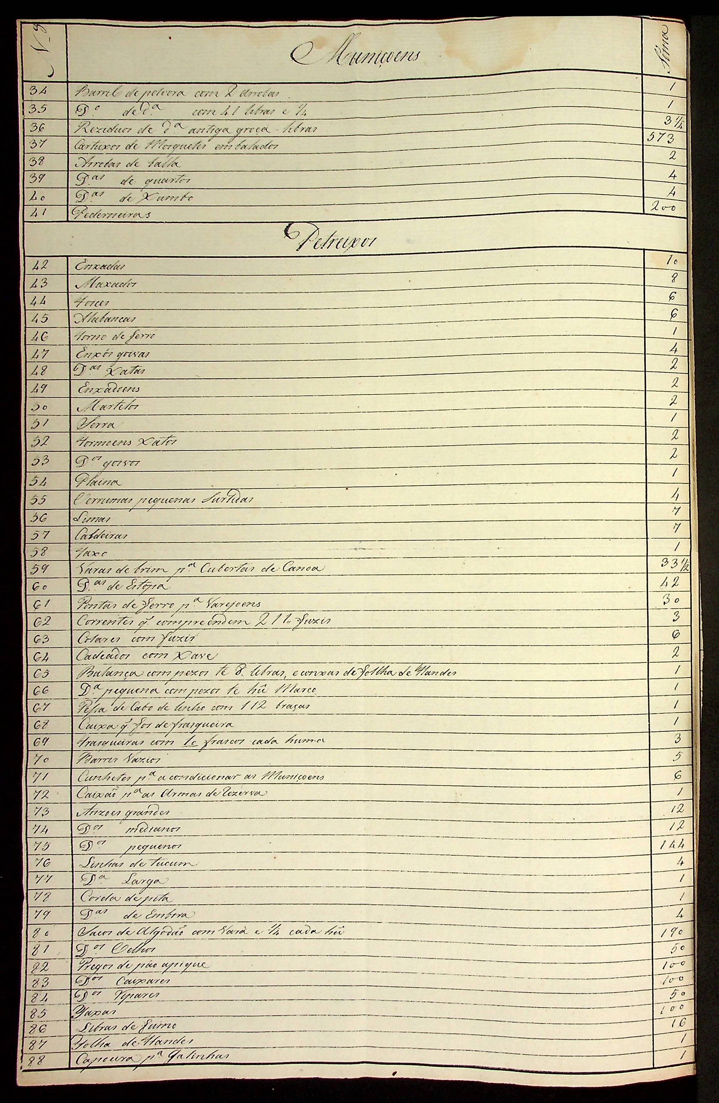 MAPA do armamento, munição pertencentes a expedição destinada para as fronteiras da província do paraguai.